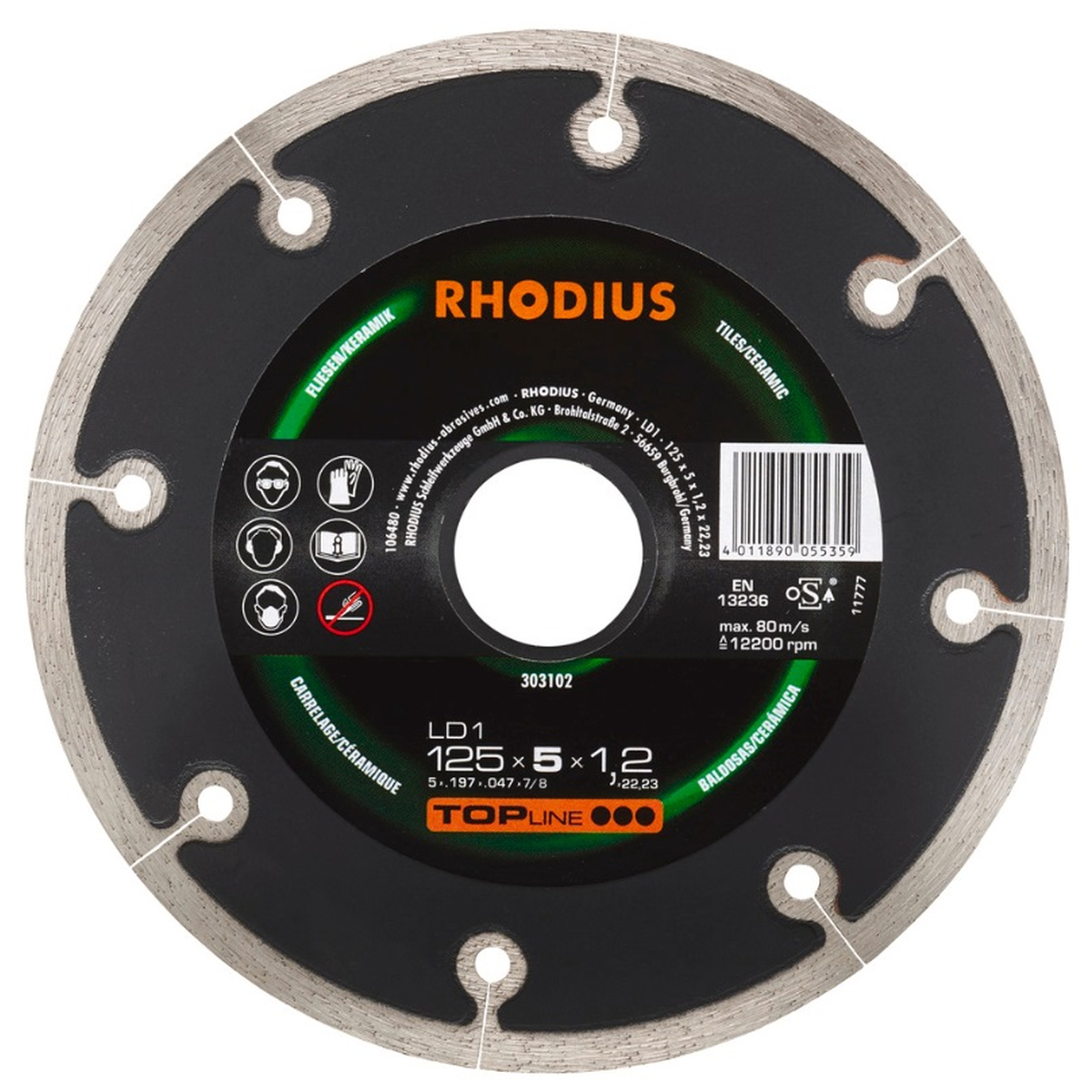 Disco corte diamante porcelánico de 125 x 5 x 1.2 x 22.23 mm LD1, De corte preciso y limpio, extrafino para corte en seco y húmedo. Adecuado para baldosas, cerámica etc. Precio unidad