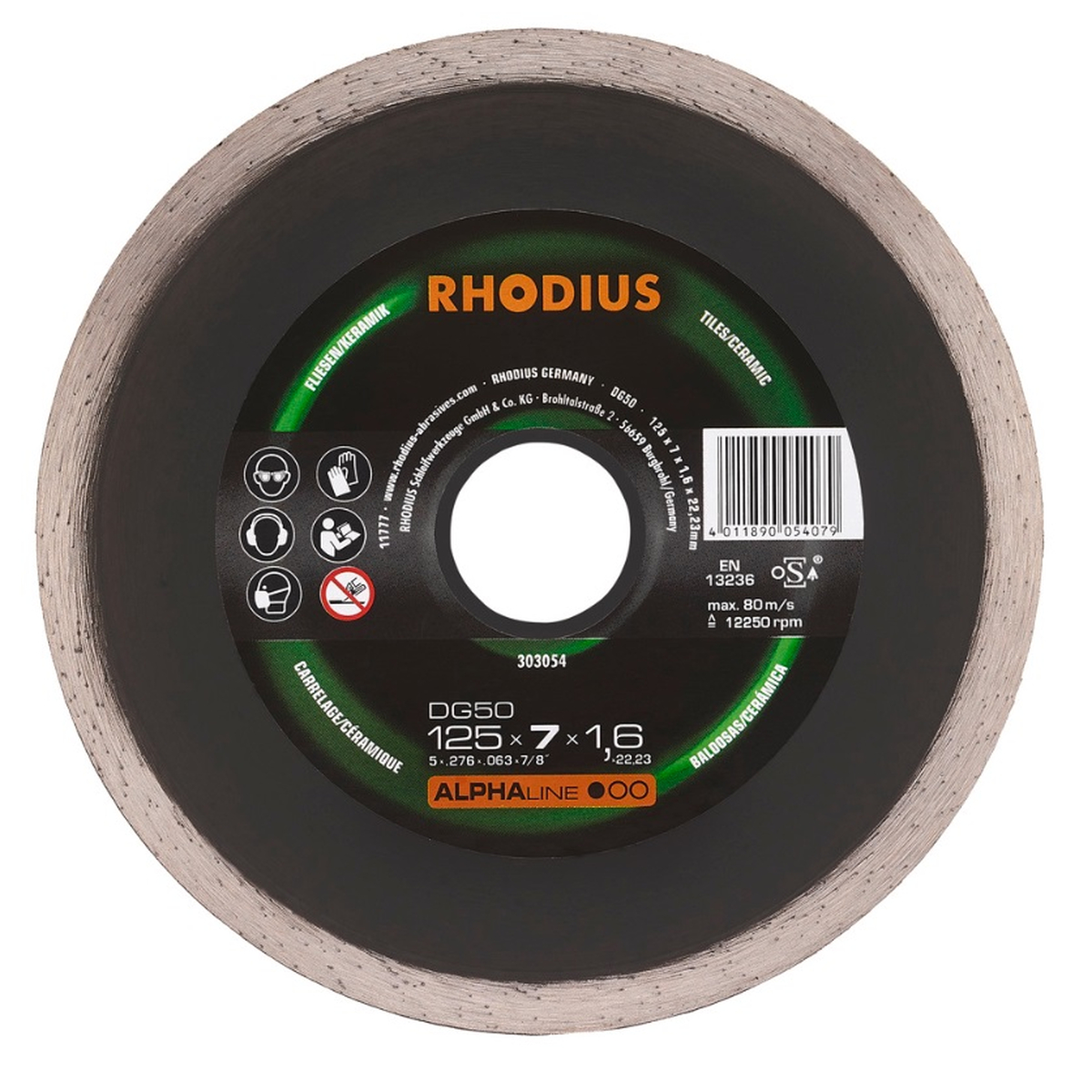 Disco corte diamante de 125 x 7 x 1.6 x 25.40 mm DG50 para corte humedo y seco. Para amoladora angular y sierra circular de mesa, Para baldosas cerámicas y gres. Precio unitario.