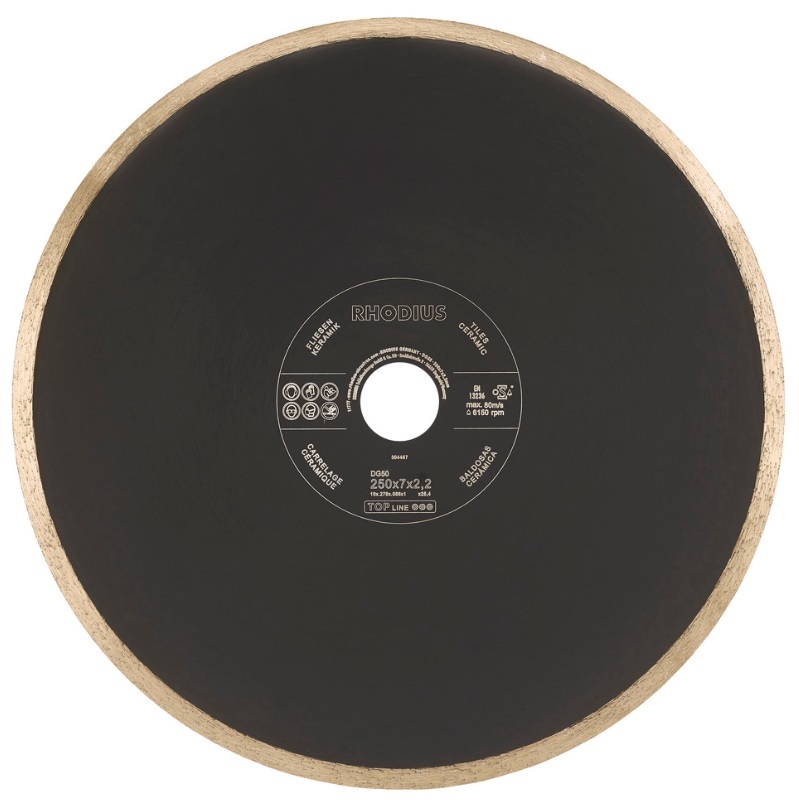 Disco corte diamante de 250 x 7 x 2.2 x 25.40 mm DG50 para corte humedo y seco. Para amoladora angular y sierra circular de mesa, Para baldosas cerámicas y gres. Precio unitario.