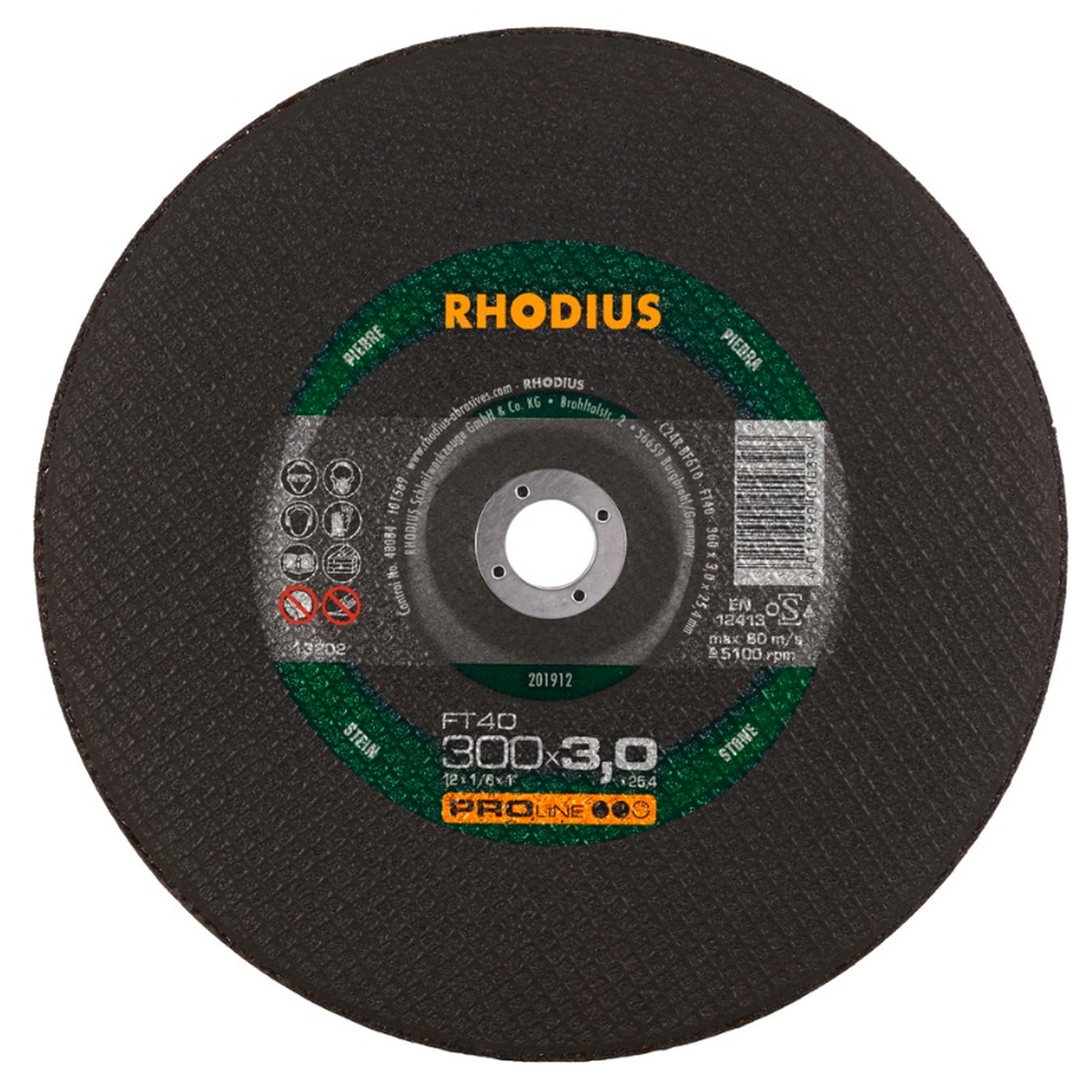 Disco corte de piedra de 300 x 3 x 25.4 mm FT40. Para máquinas estacionarias con motor a gasolina. Para hormigon, solado, piedra artificial, piedra natural, mármol etc. Caja de 25 unds
