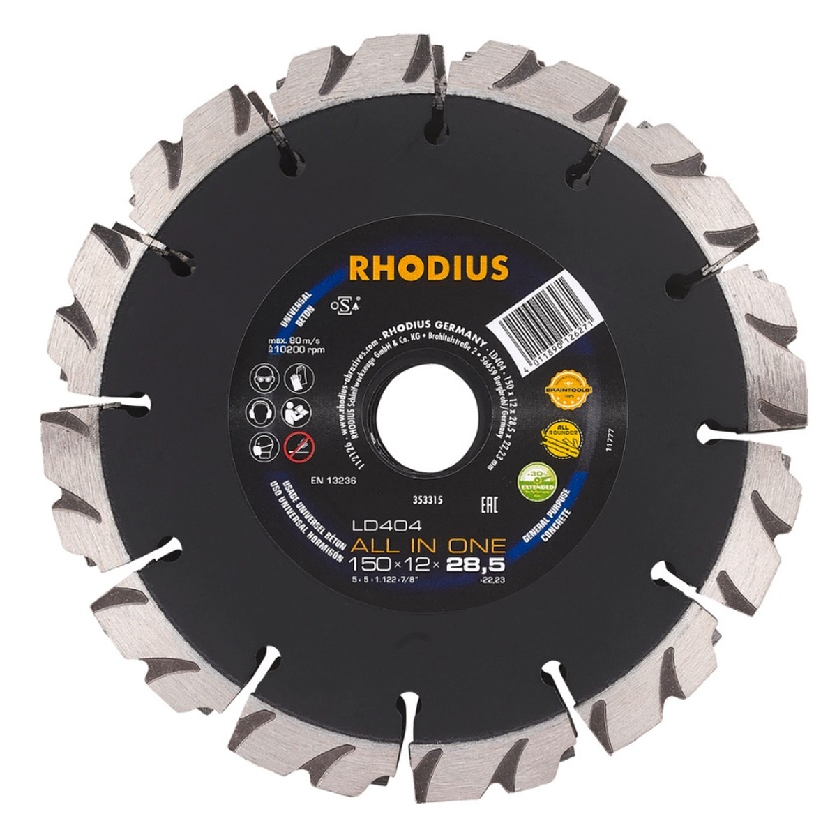 Disco de diamante fresador de 150 x 7 x 28.5 x 22.23 mm LD404 ALL IN ONE, cuarta unidad de fresado, para el fresado rápido y cómodo de rozas de muro en una gran variedad de materiales. Para rozas de muro de hasta 40 mm. Precio unitario.