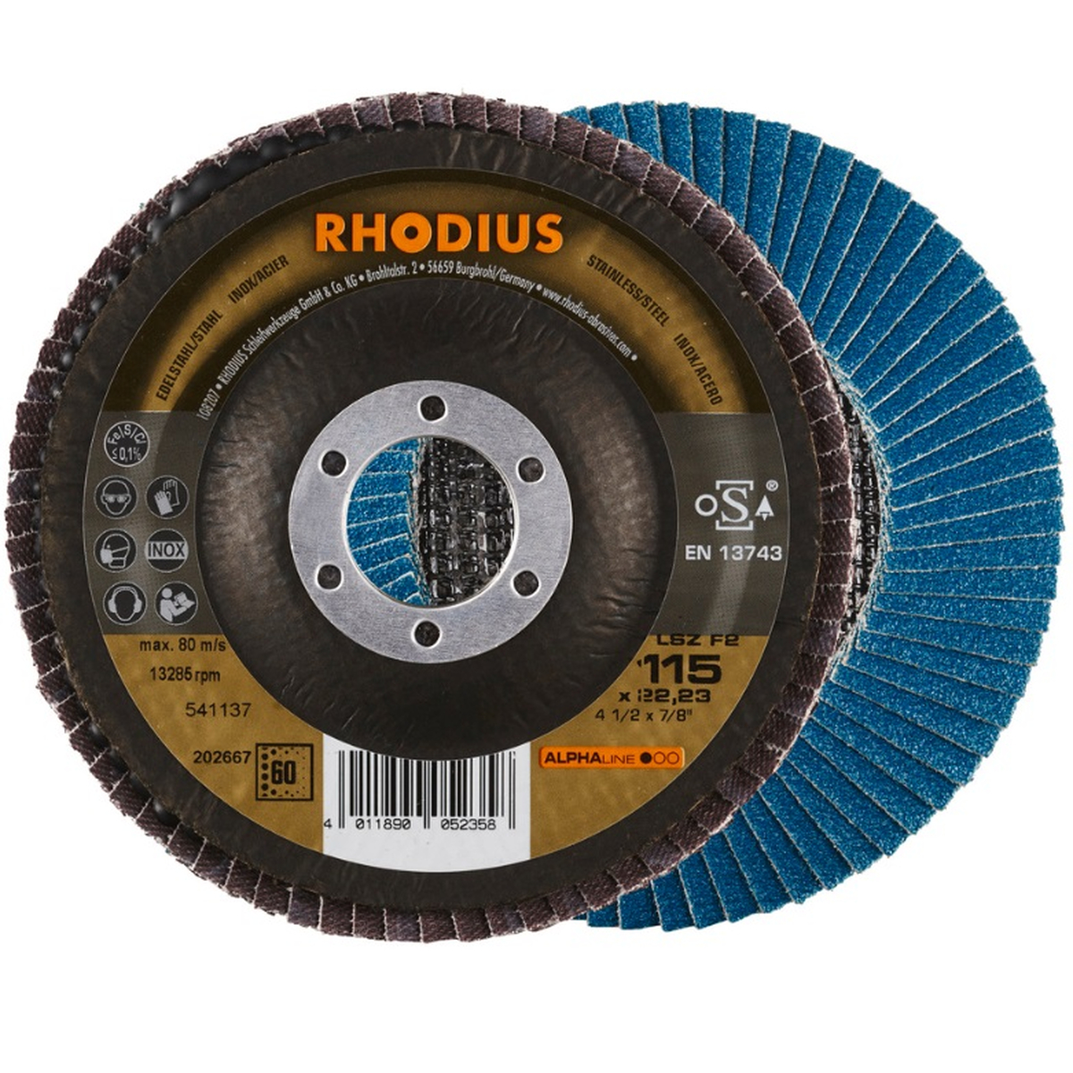 Disco desbaste de laminas de 115 mm LSZ K60, para uso profesional. Adecuado para amoladoras angulares, con soporte de paño de fibra resistente. Precio und