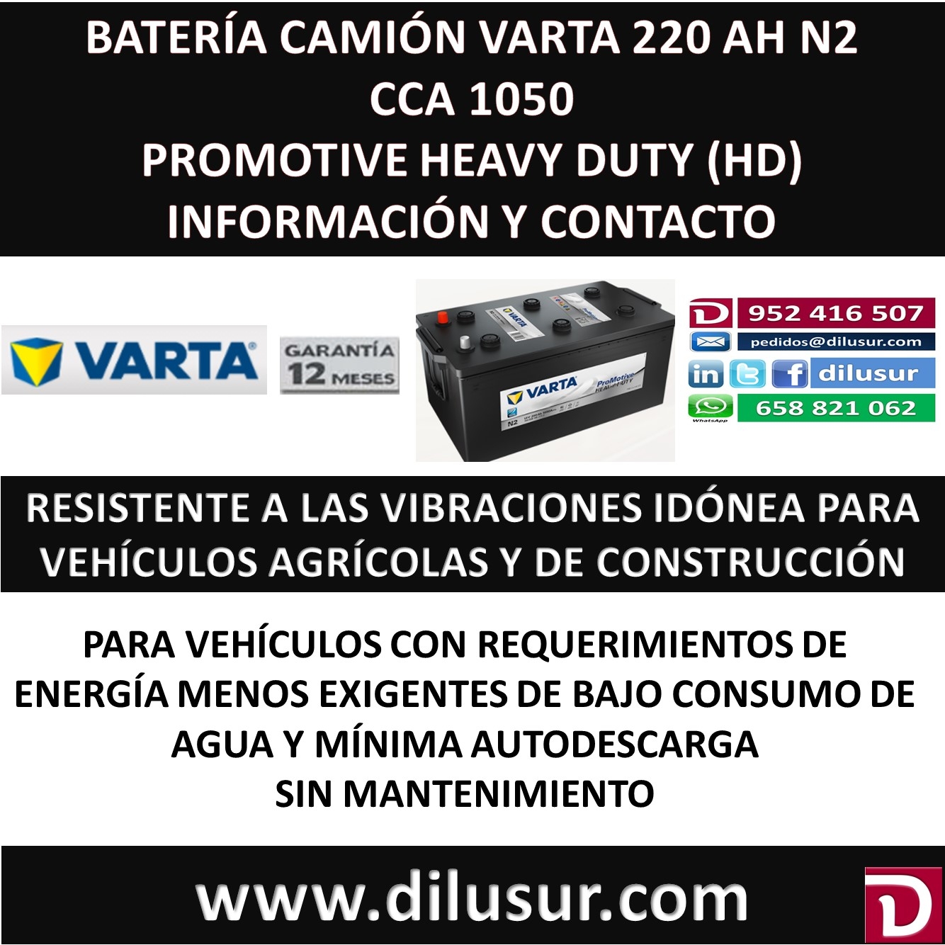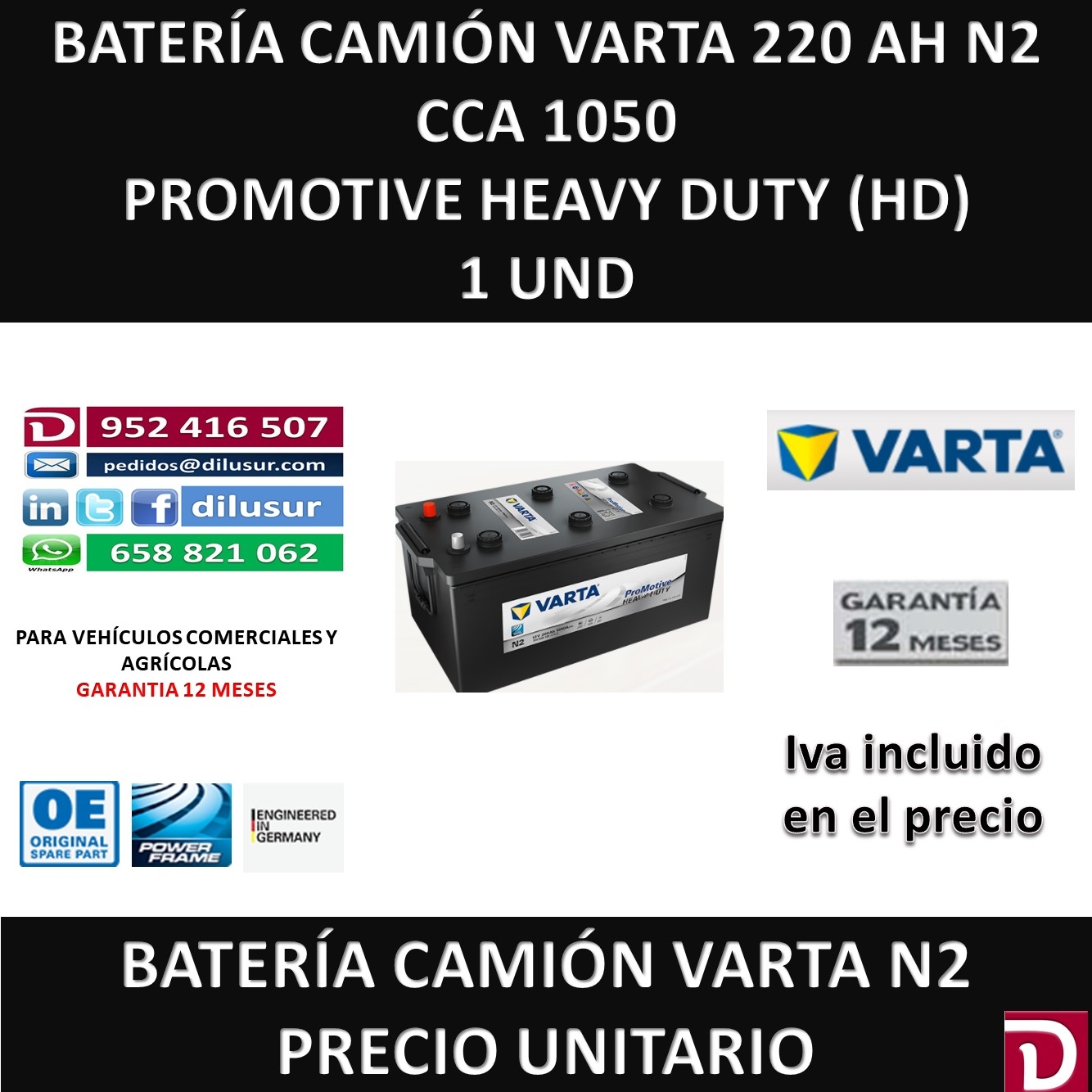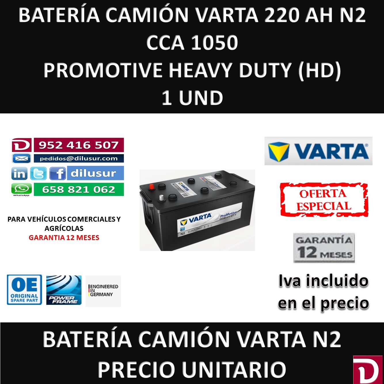 Batería camión varta 200 Ah N2, para vehículos comerciales y agrícolas, de arranque fiable, baja autodescarga, resistente a la corrosión y las vibraciones. Medidas largo 518, ancho 276, alto 242, Bornas lateral izquierdo. Iva incluido en el precio.