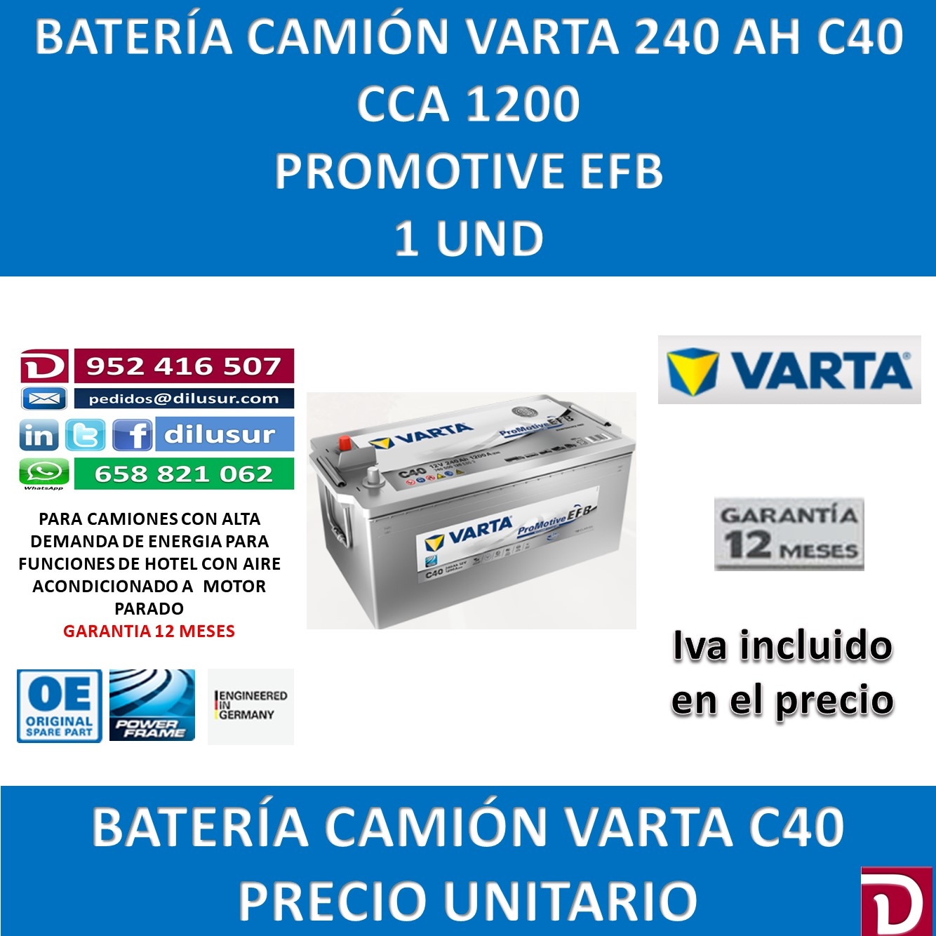 BATERIA CAMION VARTA 240 AH C40