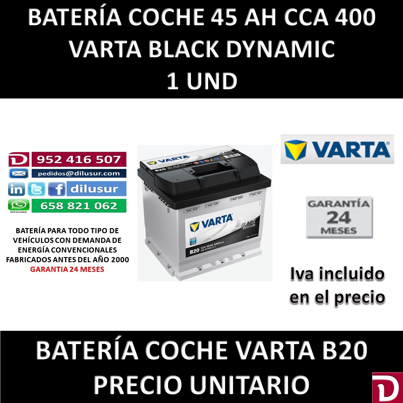 BATERIA COCHE VARTA 45 AH B20