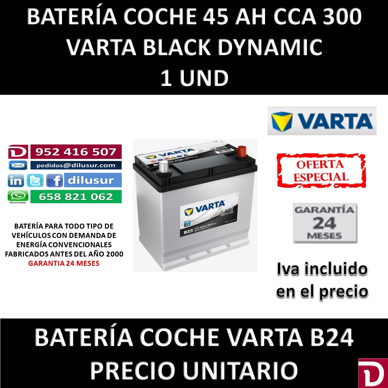 BATERIA VARTA 45AH B24 FICHA TECNICA CASTELLANO