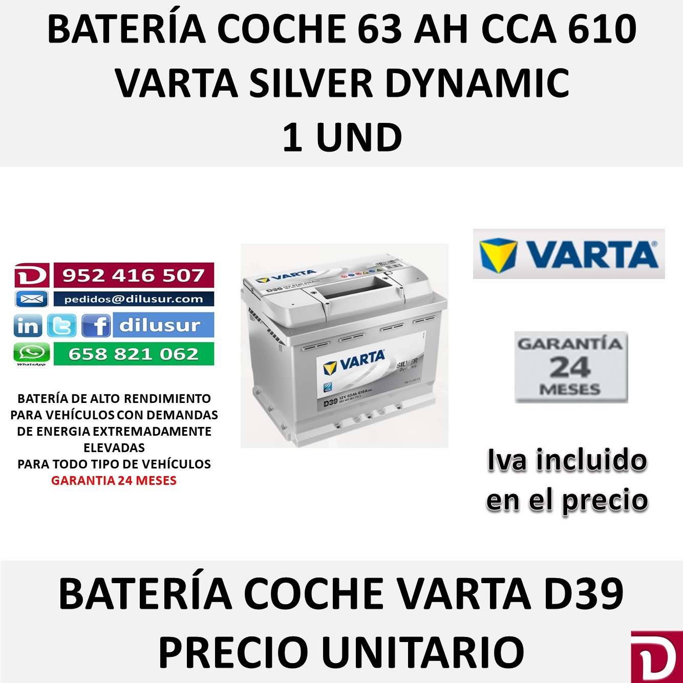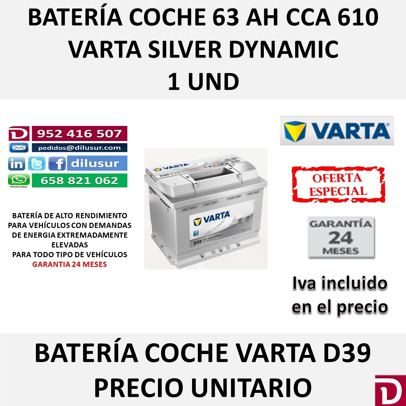 Bateria de arranque varta 63 Ah, D39 Silver Dynamic, para vehículos de alto rendimiento con demanda de energia elevada, medidas largo 242, ancho 175 y alto 190, positivo izquierda. Iva incluido