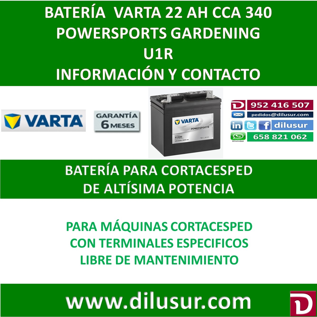 Para mas información sobre la bateria varta U1R (9) ver ficha tecnica adjunta