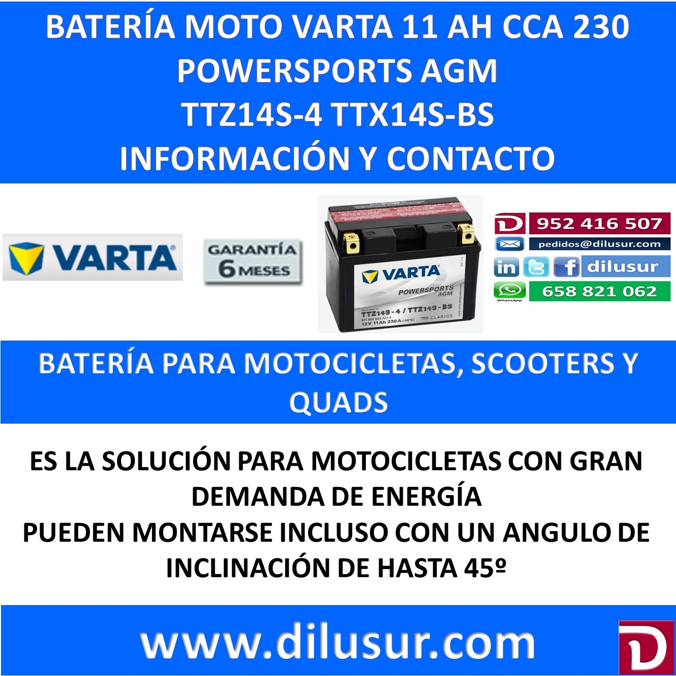 Para mas información sobre la bateria varta TTZ14S-BS, ver ficha tecnica adjunta