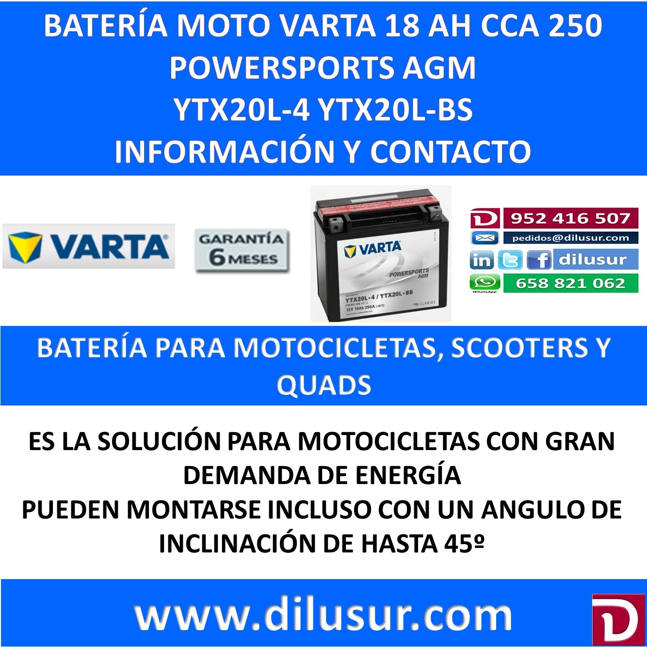 Para mas información sobre la bateria varta YTX20L-BS , ver ficha tecnica adjunta