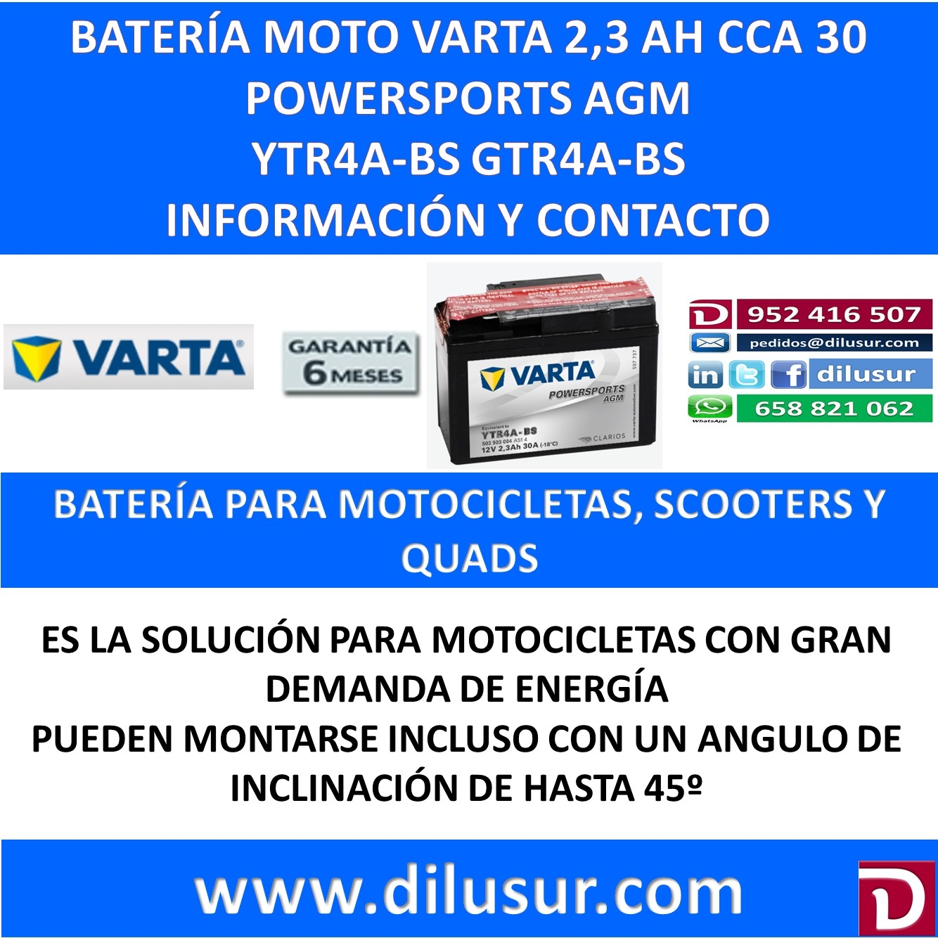 Para mas información sobre la bateria varta YTR4A-BS, ver ficha tecnica adjunta