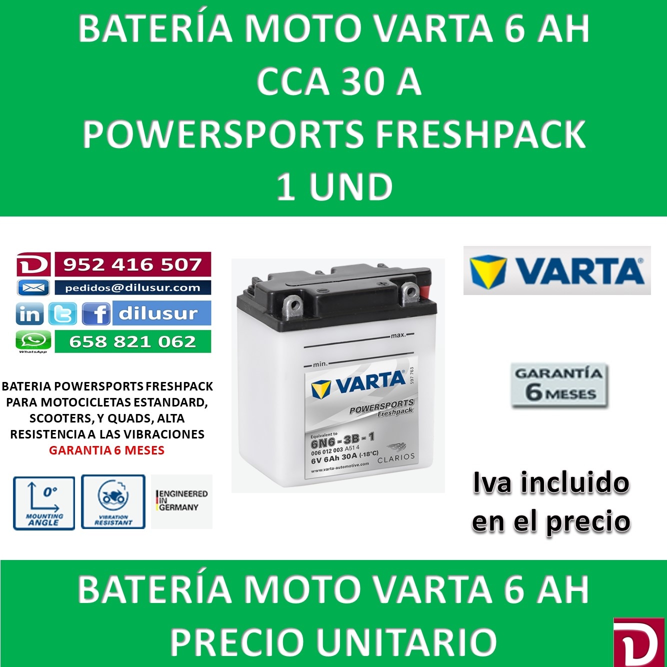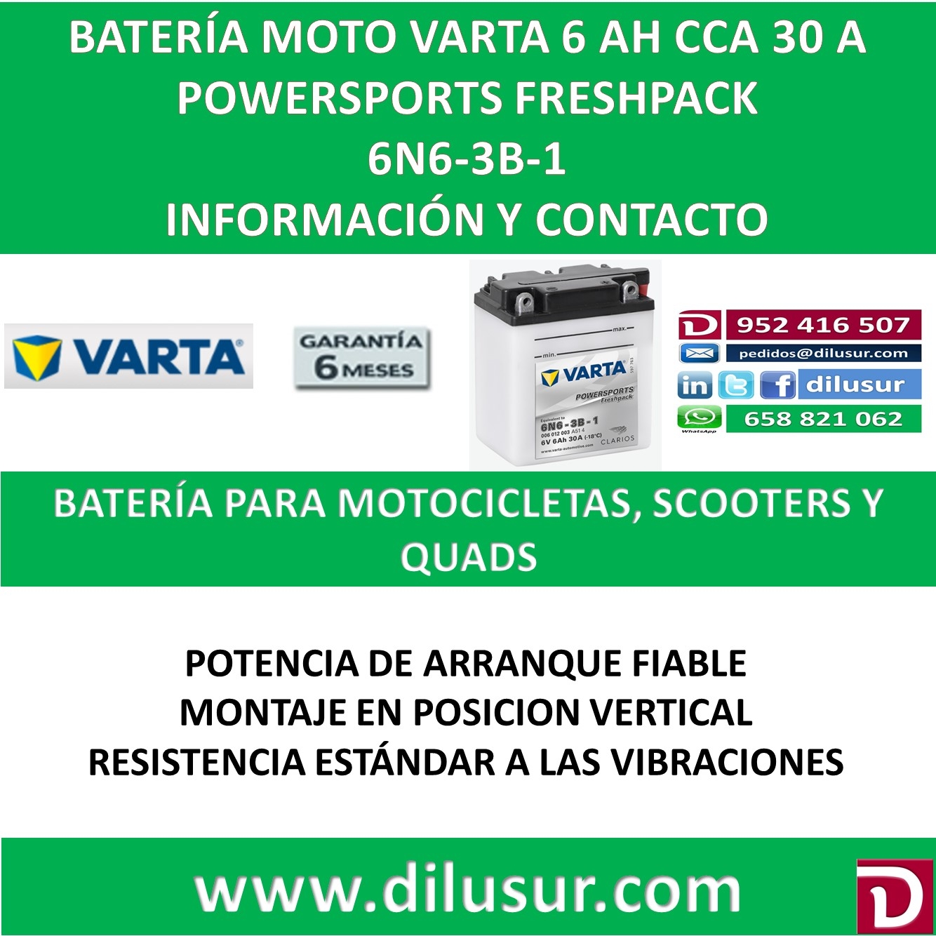 Para mas información sobre la bateria varta 6N6-3B-1 , ver ficha tecnica adjunta