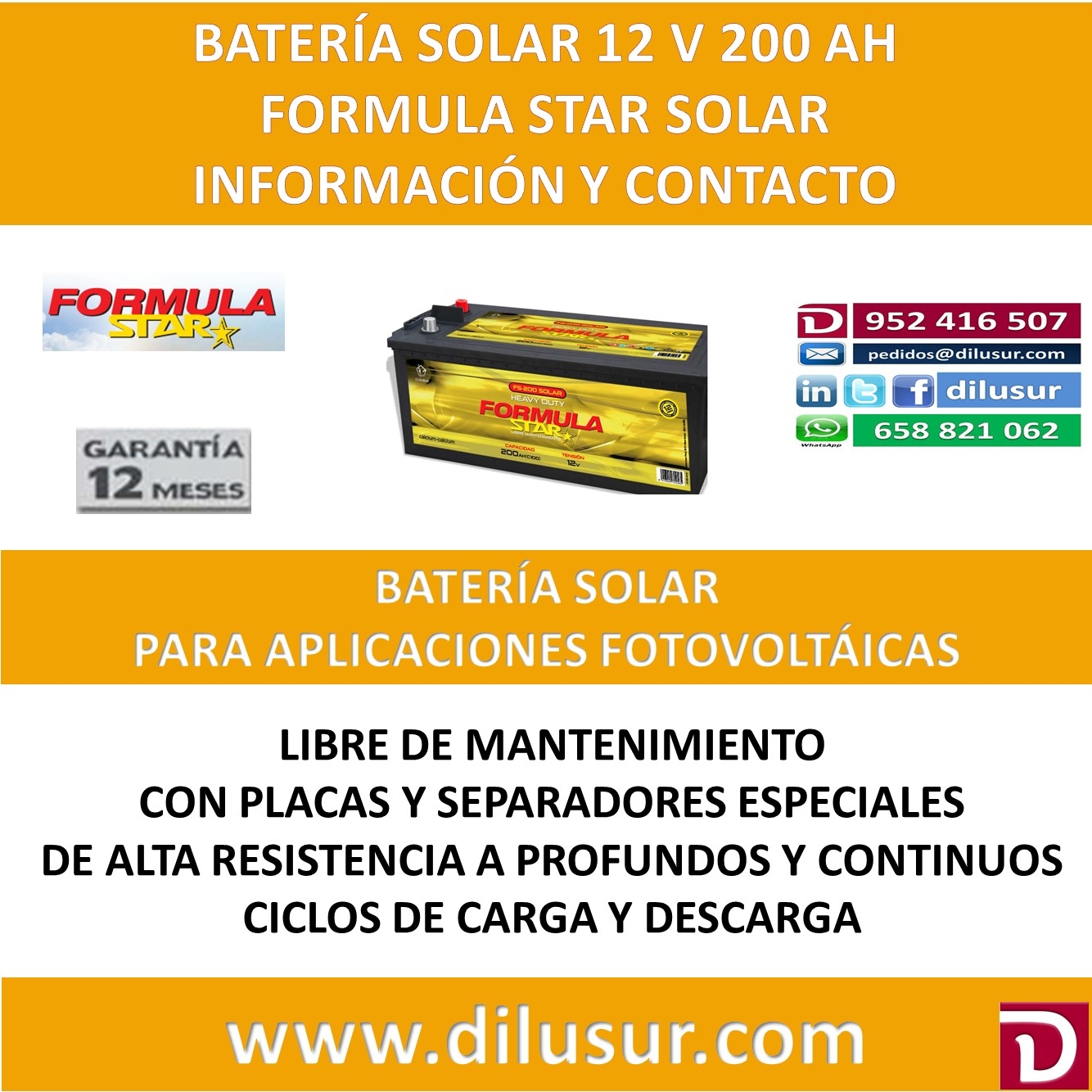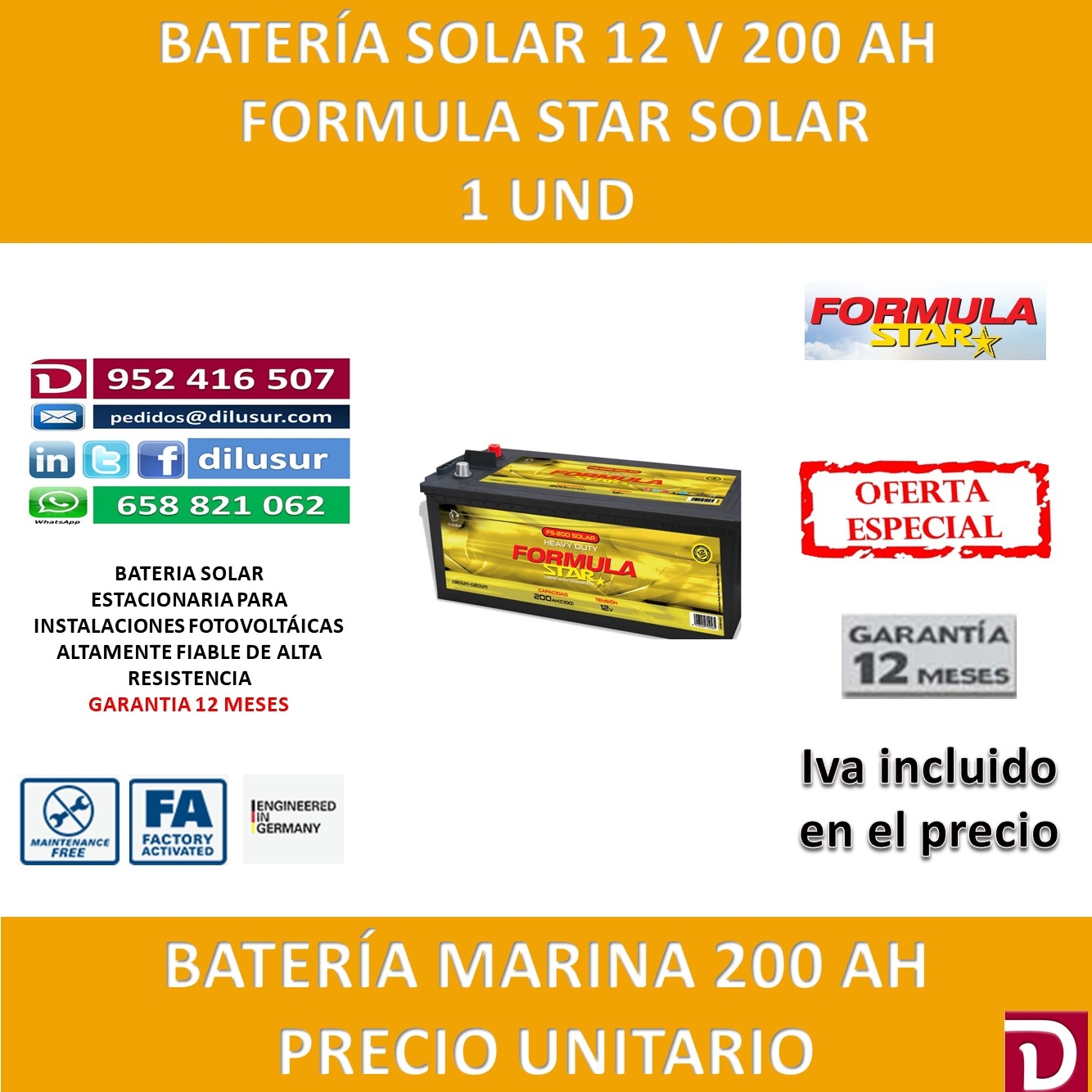 Batería solar 200 Ah Formula Star