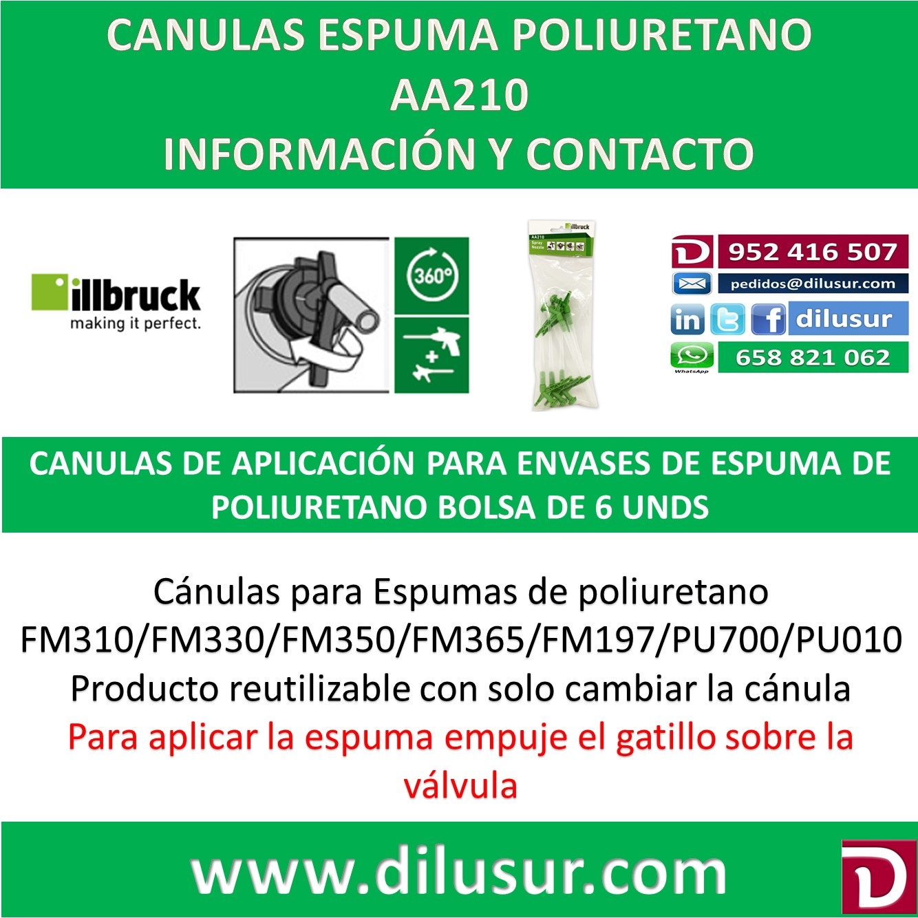 Multiposición de 360º. Excelente extrusión y facilidad de uso. Producto, FM365 y PU700, etc reutilizable con solo cambiar la cánula. Aplicación muy precisa y de mucho rendimiento. IVA incluido en el precio