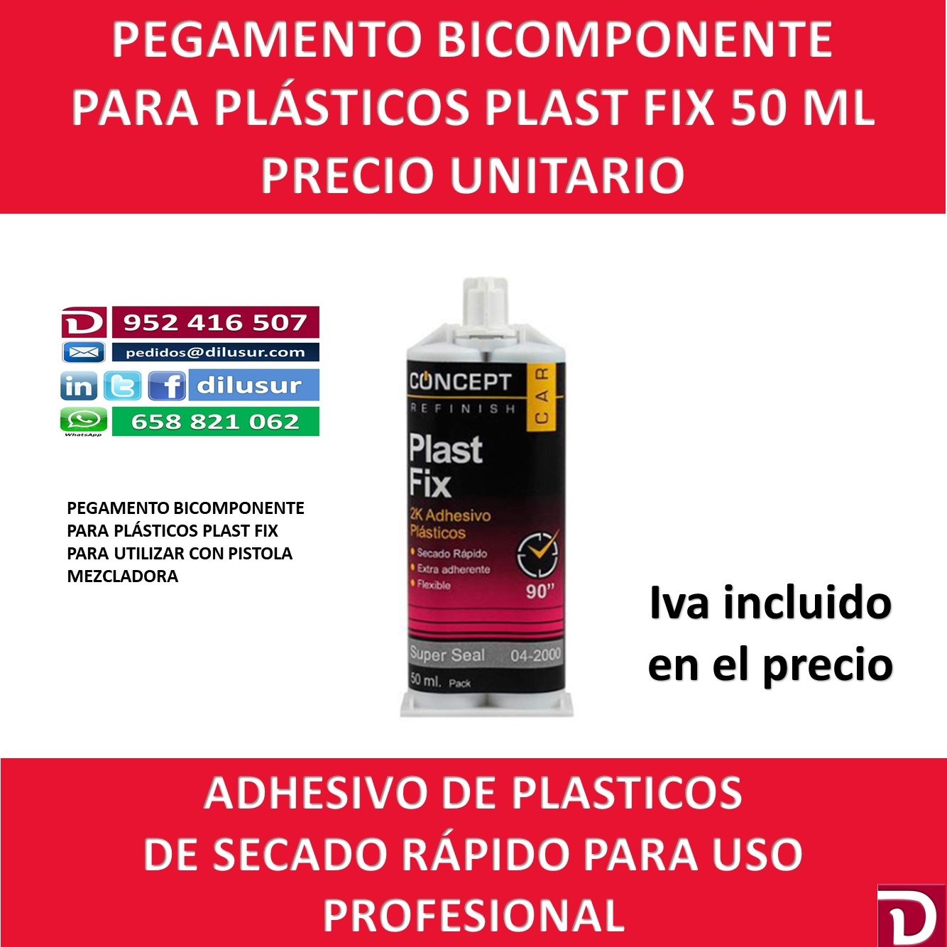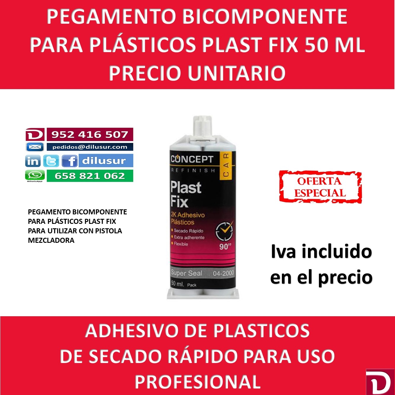 Adhesivo de plástico bicomponente (2K-PU) universal. Para pegar y reparar piezas de plástico. Facíl de usar. Se presenta en cartucho de 50ml. Color negro. Precio unitario. IVA incluido