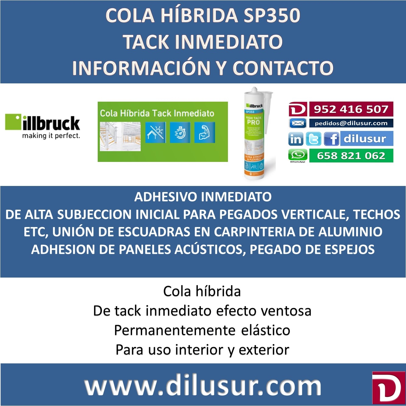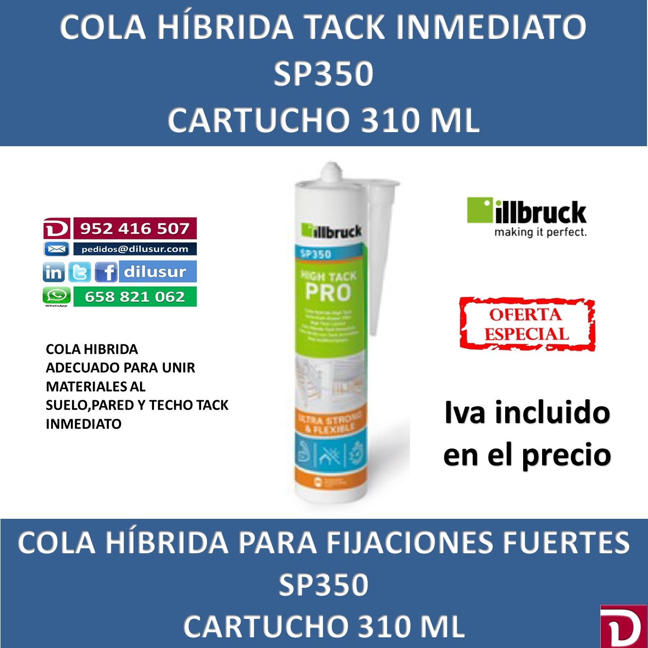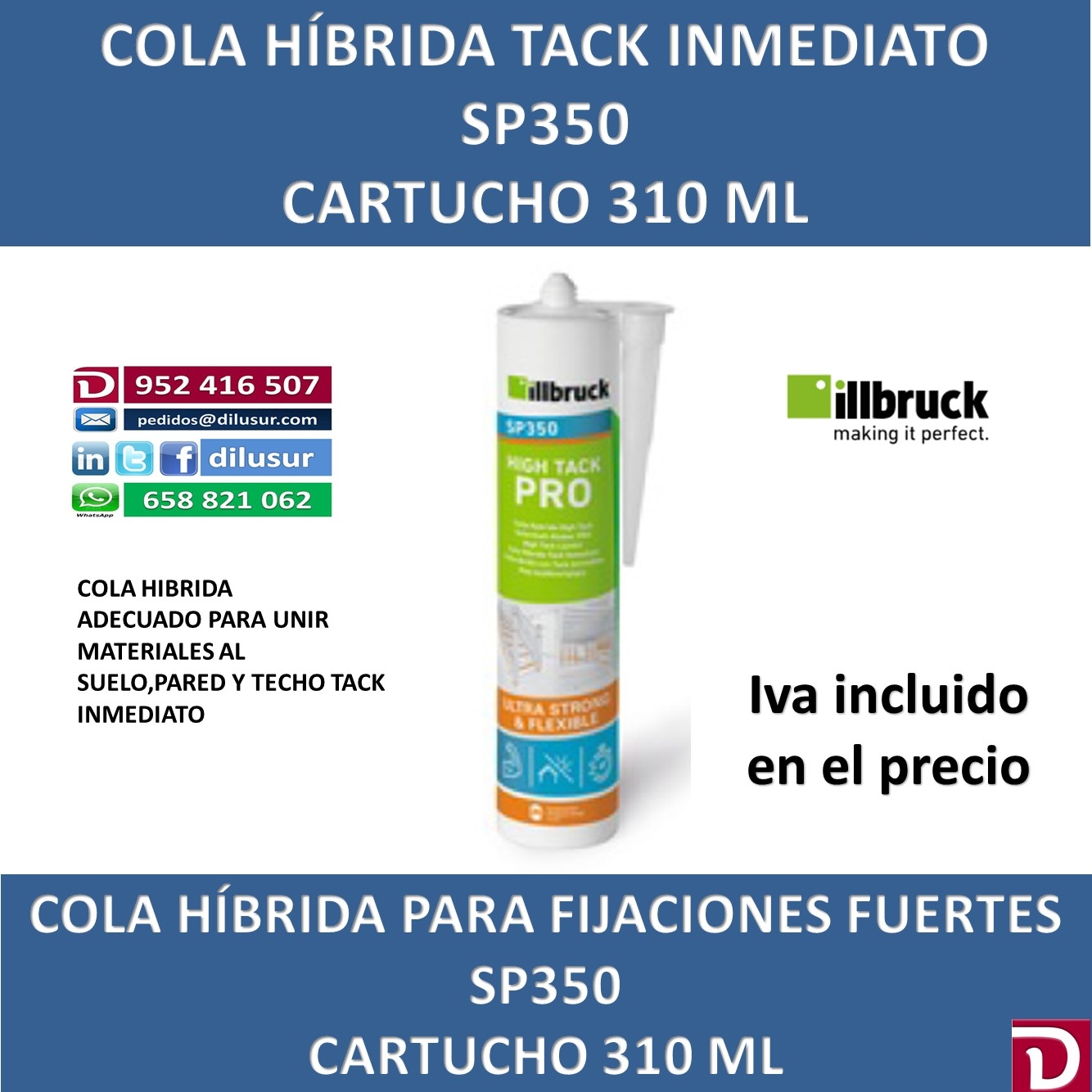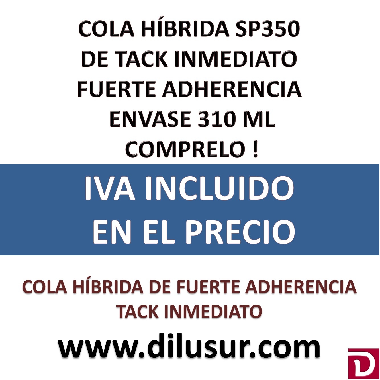 Cola híbrida SP350 de alta calidad tecnológica y alta elasticidad. Tack inmediato efecto ventosa. Alta viscosidad para encolados de adhesión inicial alta. Se presenta en cartuchos de 310 ml. Color blanco. IVA incluido