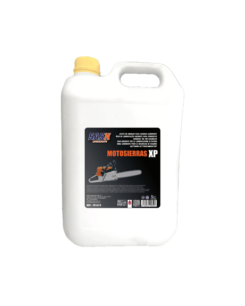 Aceite motosierra XP, para cadenas, de alta adherencia para engrase, para todo tipo de marcas, de carácter universal, adherente y anticorrosivo. Envase 5 L. Caja 4 unds