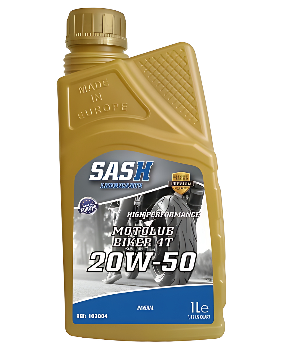 Lubricante moto 20W50 Motolub Biker, mineral de alta calidad para todo tipo de motores de motocicletas de 4 tiempos. Envase 1 L