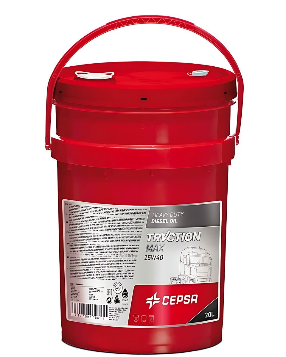 Aceite motor camión, 15W40 Traction Max. Recomendado para vehículos pesados europeos, americanos y asiáticos. Para motores de ultima tenologia que cumplan con las emisiones Euro V, Euro IV y anteriores. Bidón 20 L.