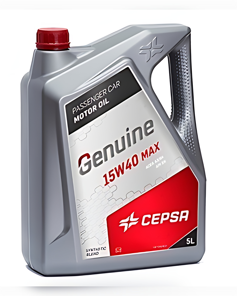 Aceite motor de coche 15W40 Genuine max, semi sintético para motores gasolina y diesel de inyección directa. Apto para motores duales GNC/GLP, para vehículos ligeros furgonetas. Envase 5 L.