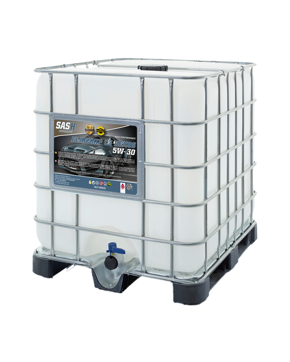 Aceite motor coche 5W30 C3 Dexos 2 Flagship para motores ligeros gasolina y diesel, de baja viscosidad y alto nivel de ahorro de combustible, para vehículos con DPF. Contenedor 1000 L.