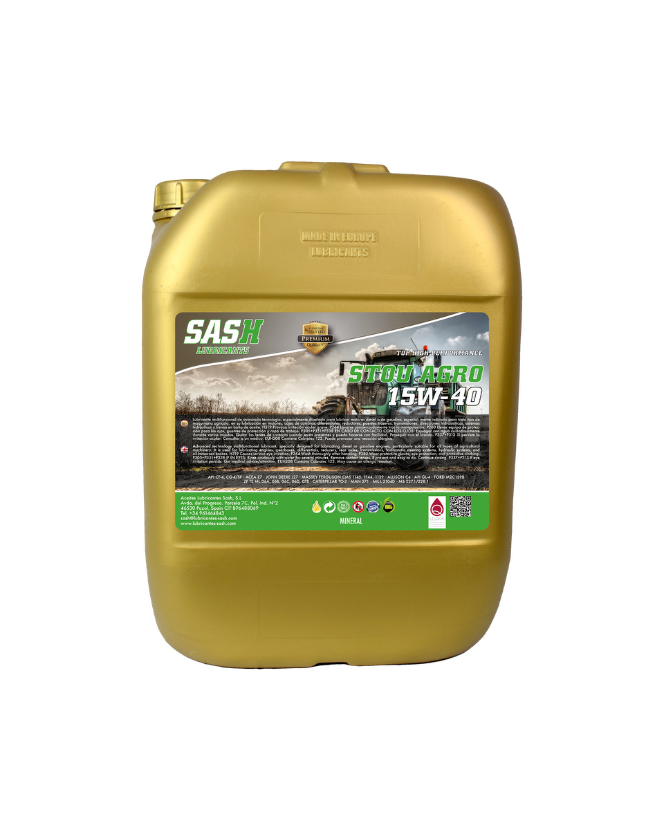 Aceite tractor multifuncional 15w40 Stou agro, para maquinaría agrícola y de obras publicas, para todos los requerimientos de lubricación, Motor, Transmisión, Hidráulico y frenos. Bidón 20 L