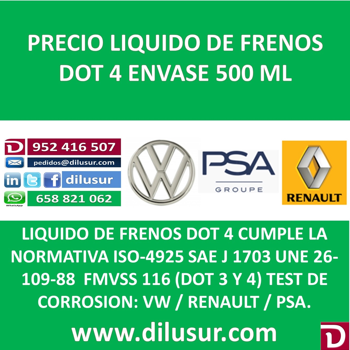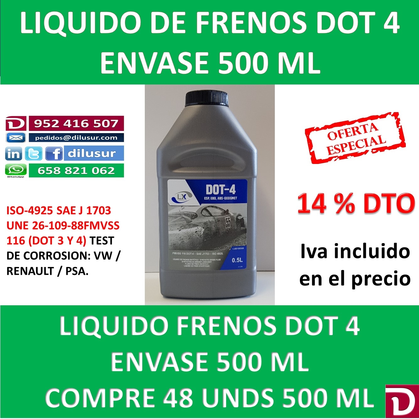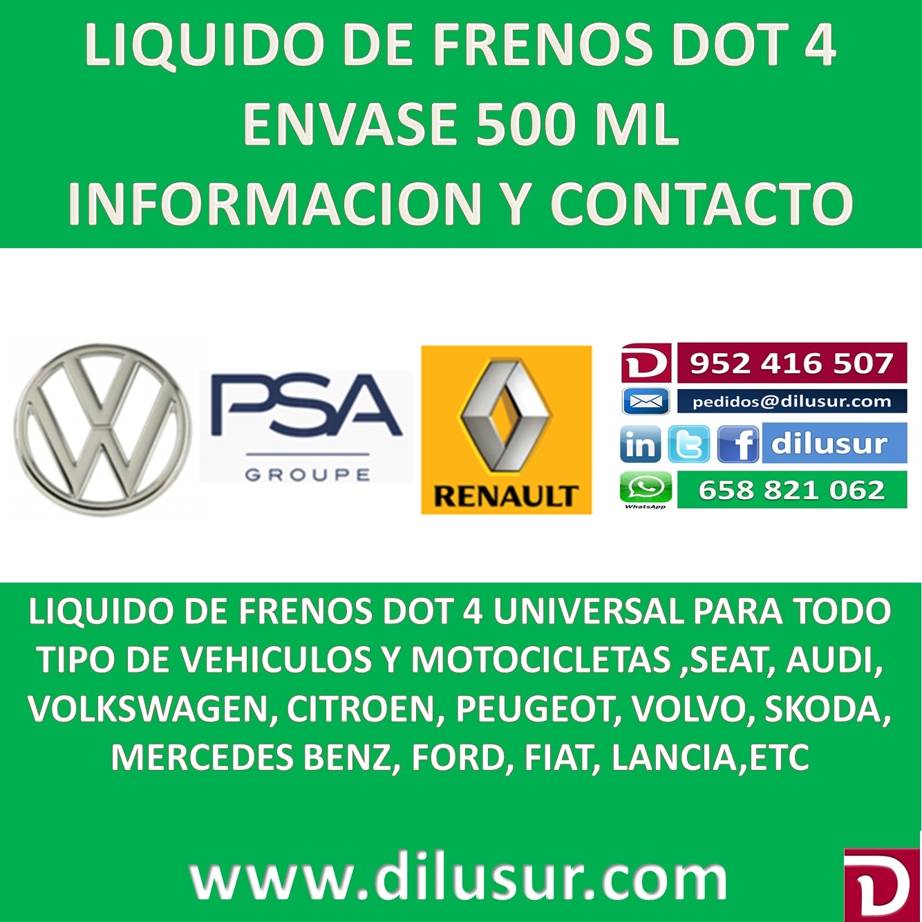Mas informacion sobre el liquido de Frenos DOT 4 sintetico 100% , ver ficha tecnica adjunta
