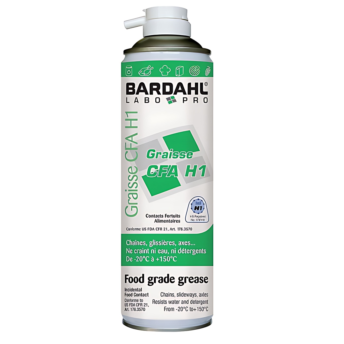 Grasa lubricante alimentaria para servicios severos, apta para todos los mecanismos susceptibles de entrar en contacto con los productos alimentarios o su embalaje, registrada con el num 164745 H1 NSF, Envase 500 ML en Spray
