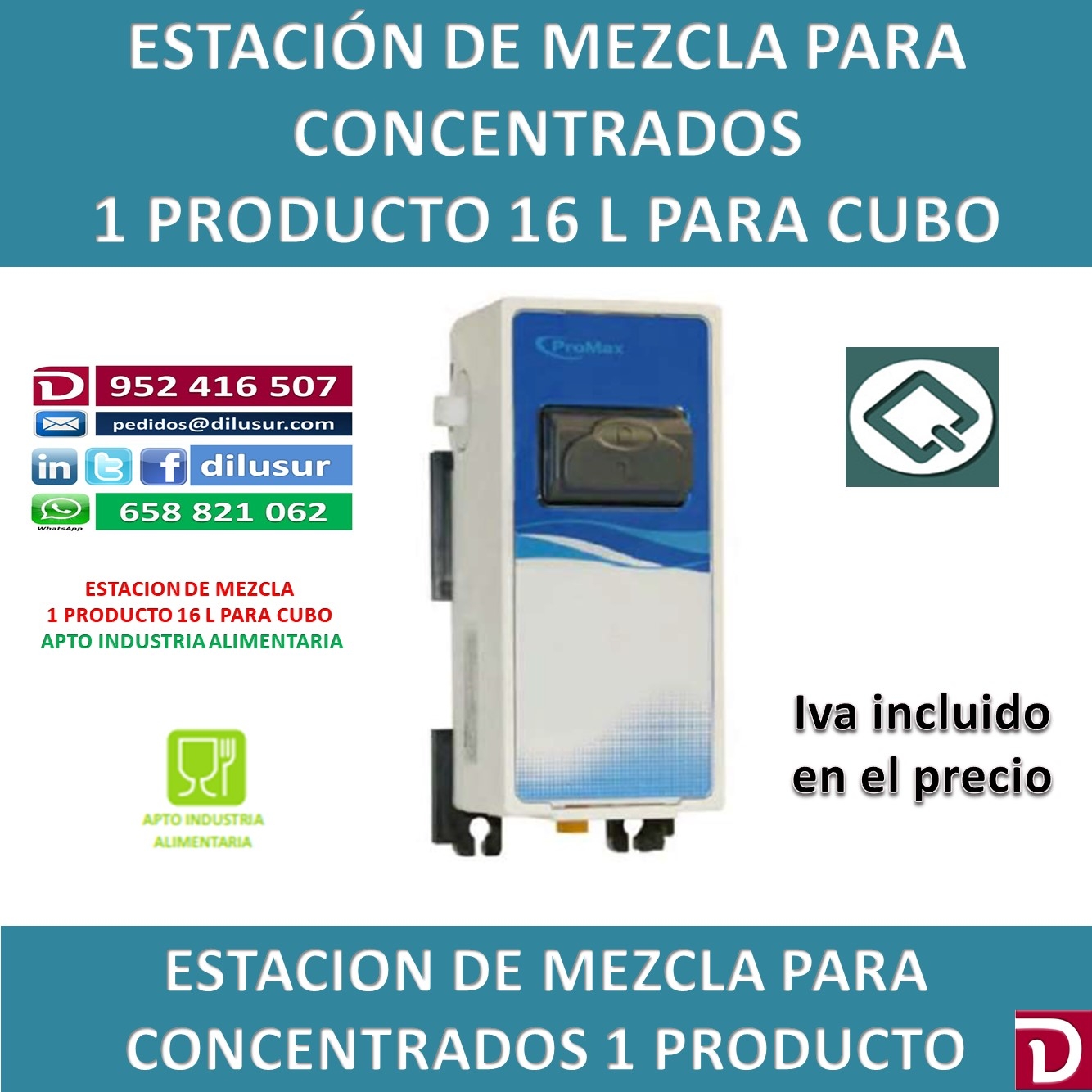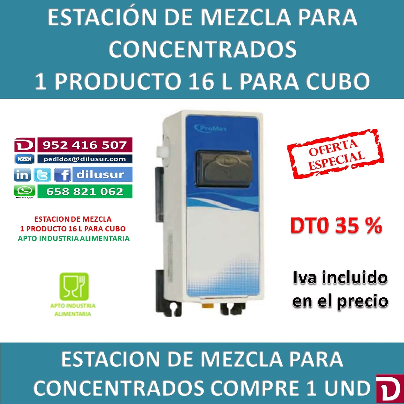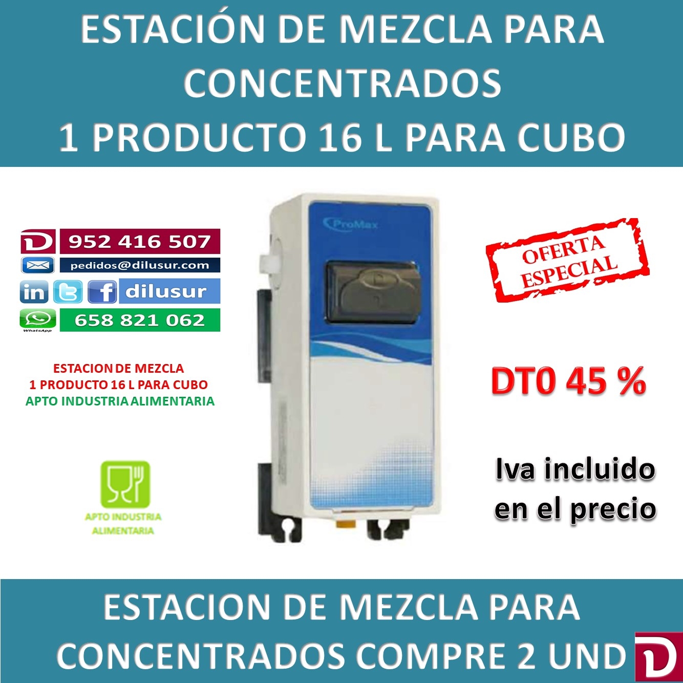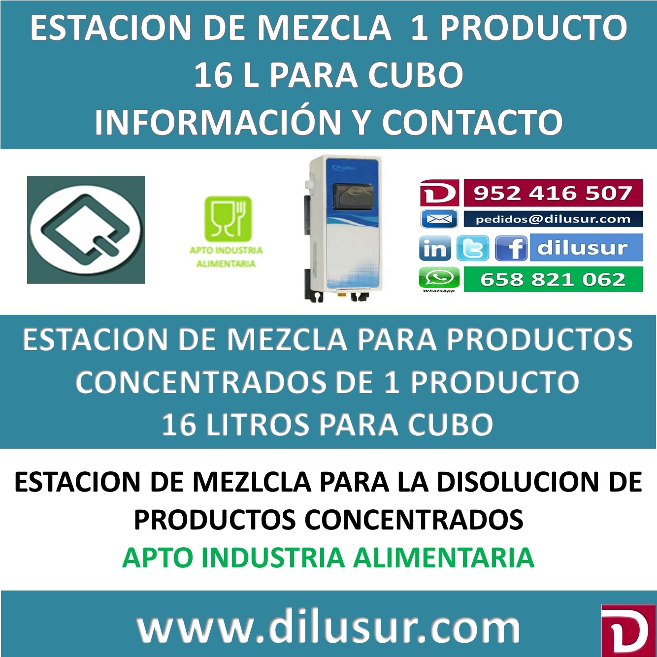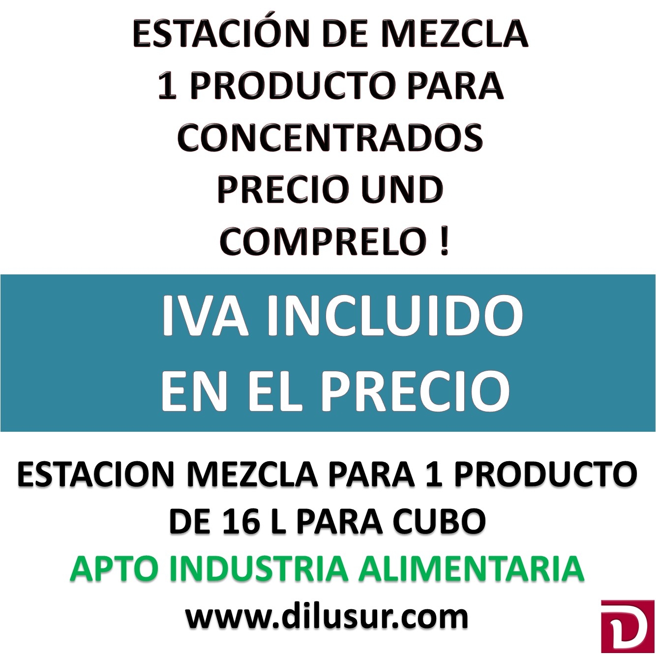 Estacion de mezcla para dosificar todo tipo de productos concetrados, adecuado para cubos de hasta 14 L. Muy indicado y preciso, de fácil instalacion. Proporciona un ahorro considerable en costes. Apto industria alimentaria. 1 und