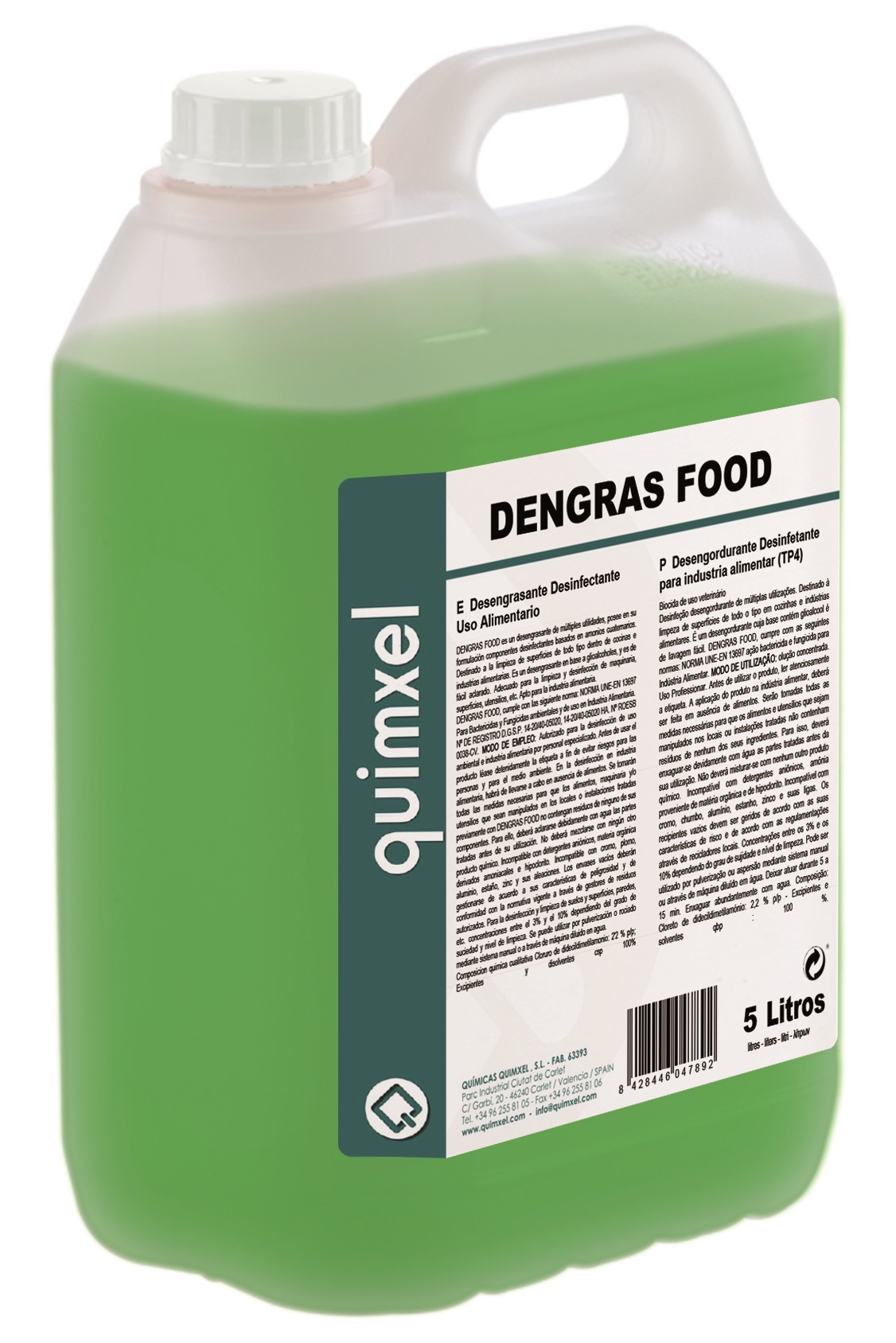 Desengrasante desinfectante uso alimentario con amonios cuaternarios, para todo tipo de superficies en las cocinas e industrias alimentarias. Envase 5 L. Iva incluido en el precio