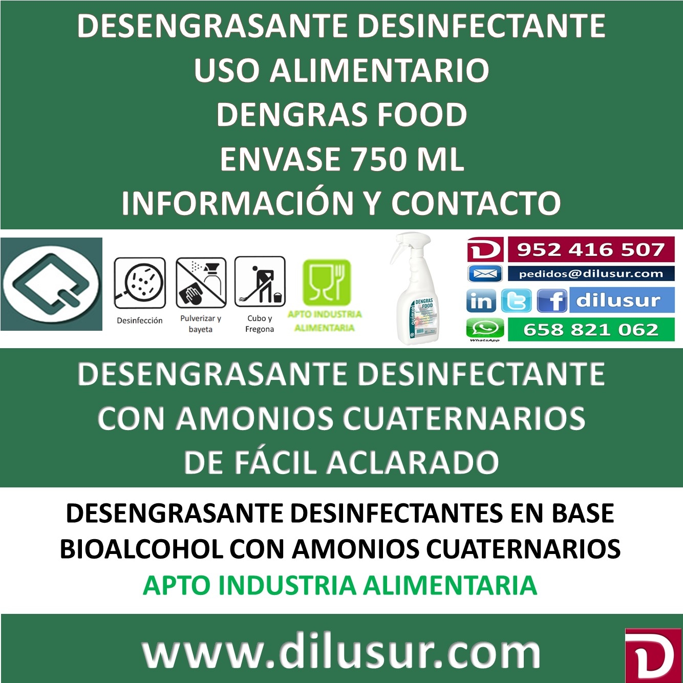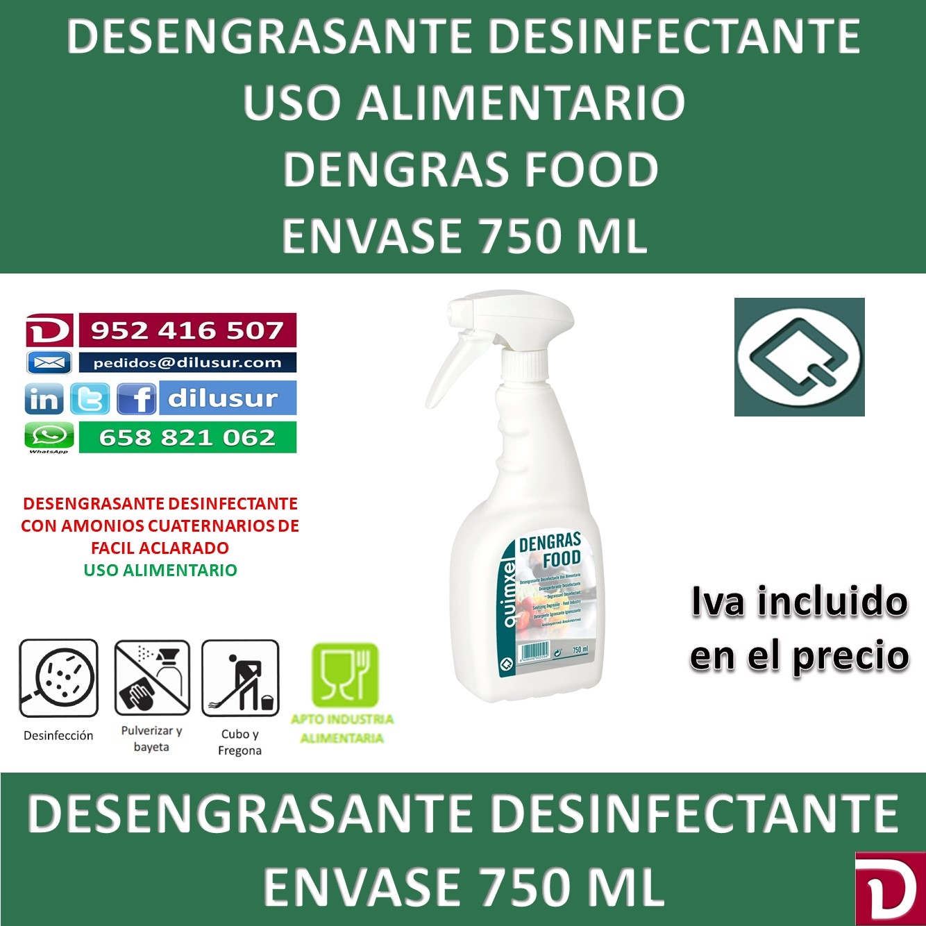 Desengrasante desinfectante uso alimentario con amonios cuaternarios, para todo tipo de superficies en las cocinas e industrias alimentarias. Envase 750 ML. Iva incluido en el precio