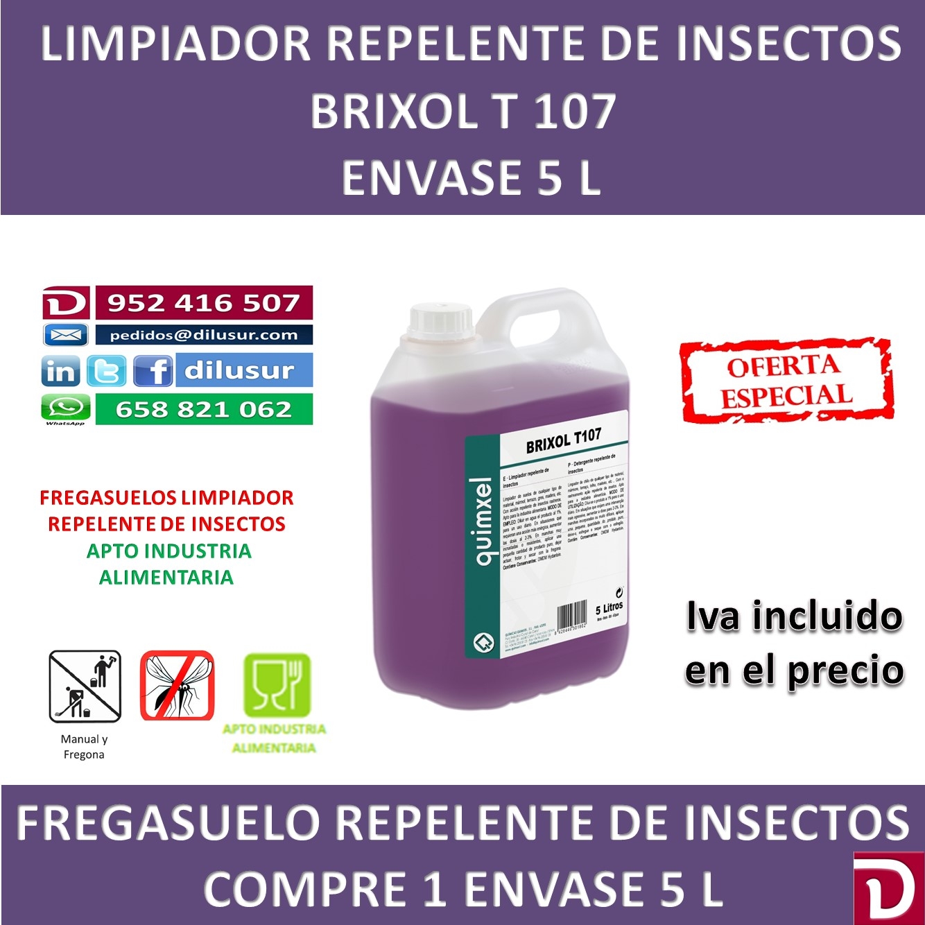 Limpiador repelente de insectos, para cualquier tipo de suelos tanto naturales como sintéticos, incluidos los de madera, con acción repelente de insectos rastreros. Envase 5 L, Apto industria alimentaria