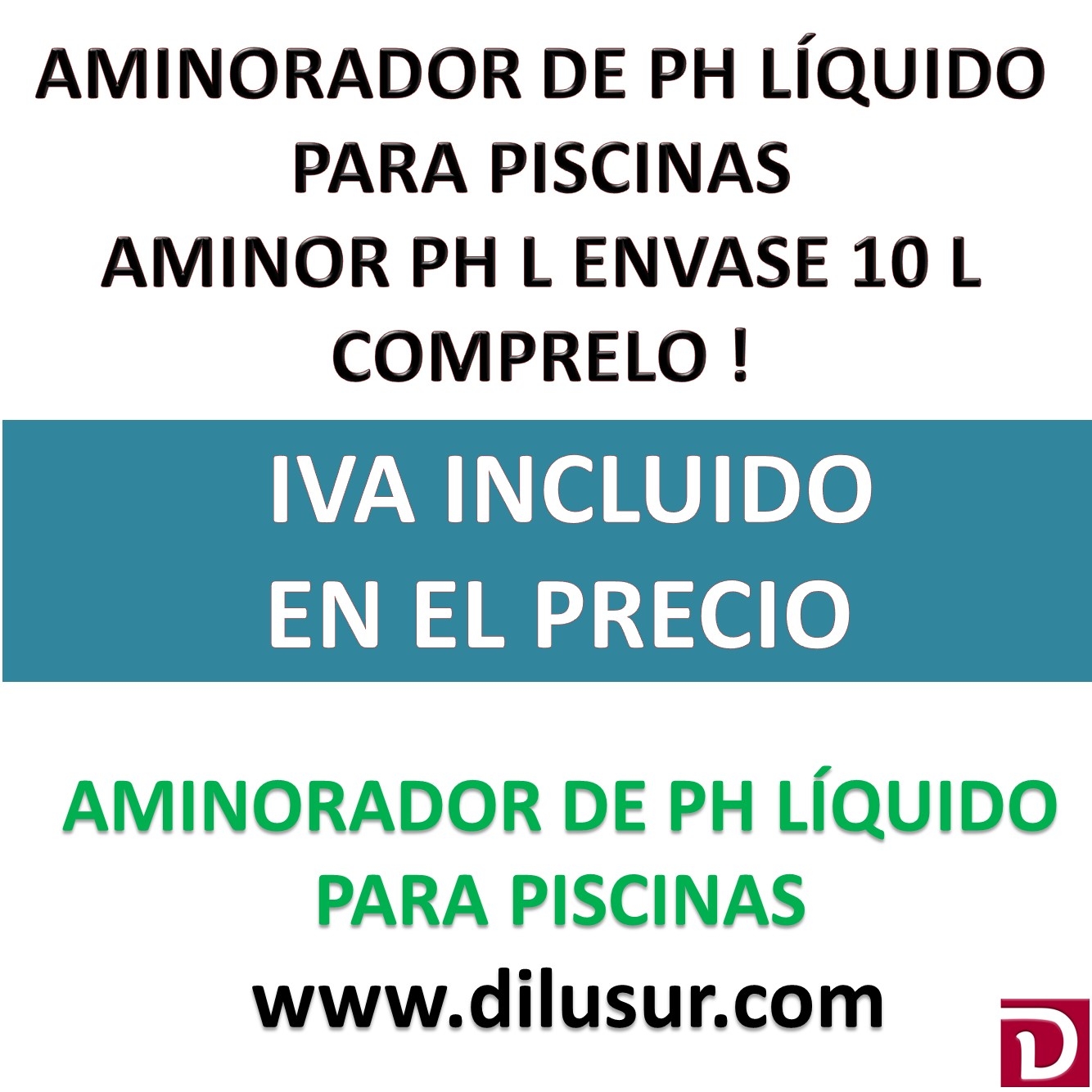 Disminuidor de ph líquido concentrado para el tratamiento de aguas de piscinas y circuitos. Envase 10 L. Iva incluido.