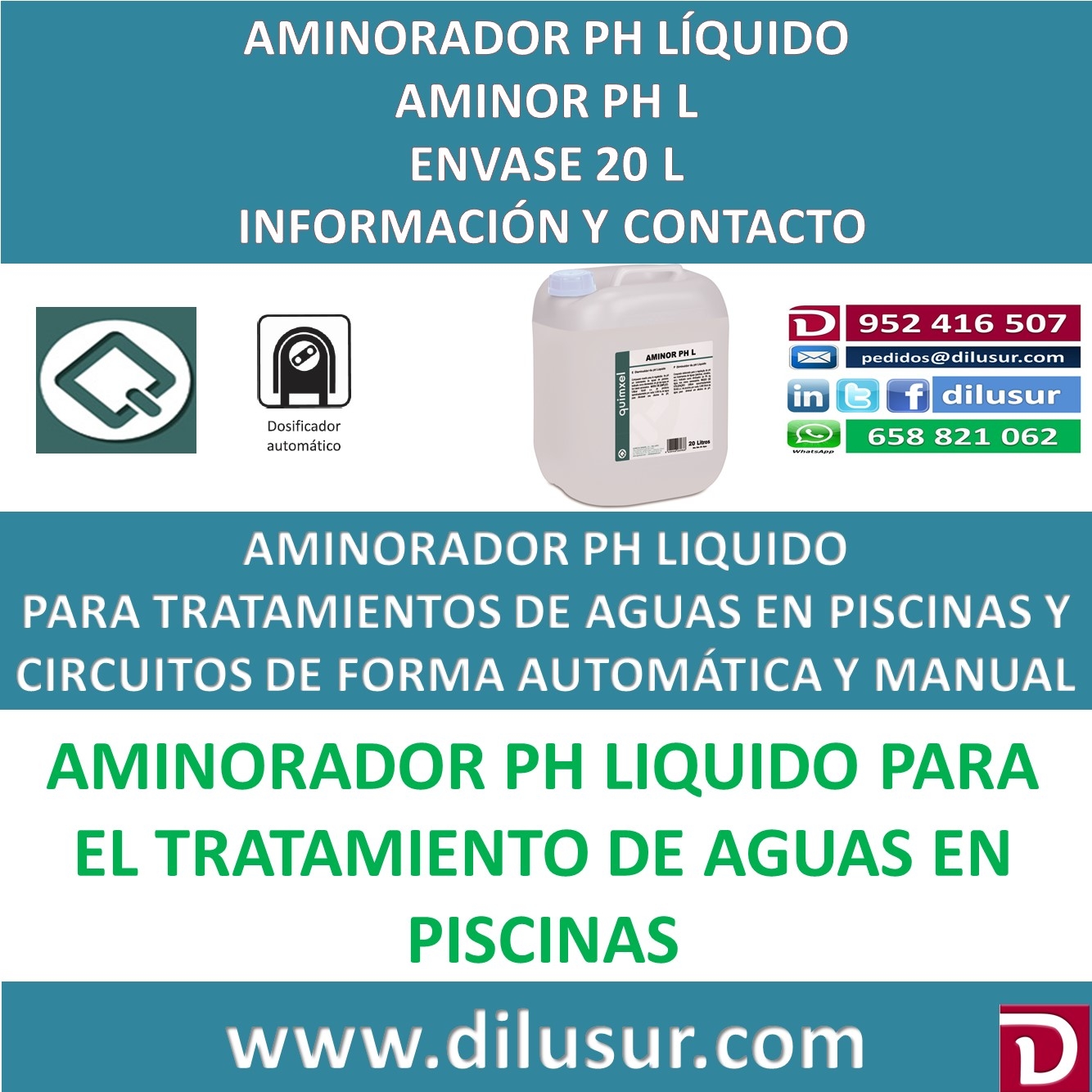 Disminuidor de Ph líquido para tratamientos de aguas en piscinas, circuitos etc. Indicado como disminuidor del Ph del agua en casos necesarios.