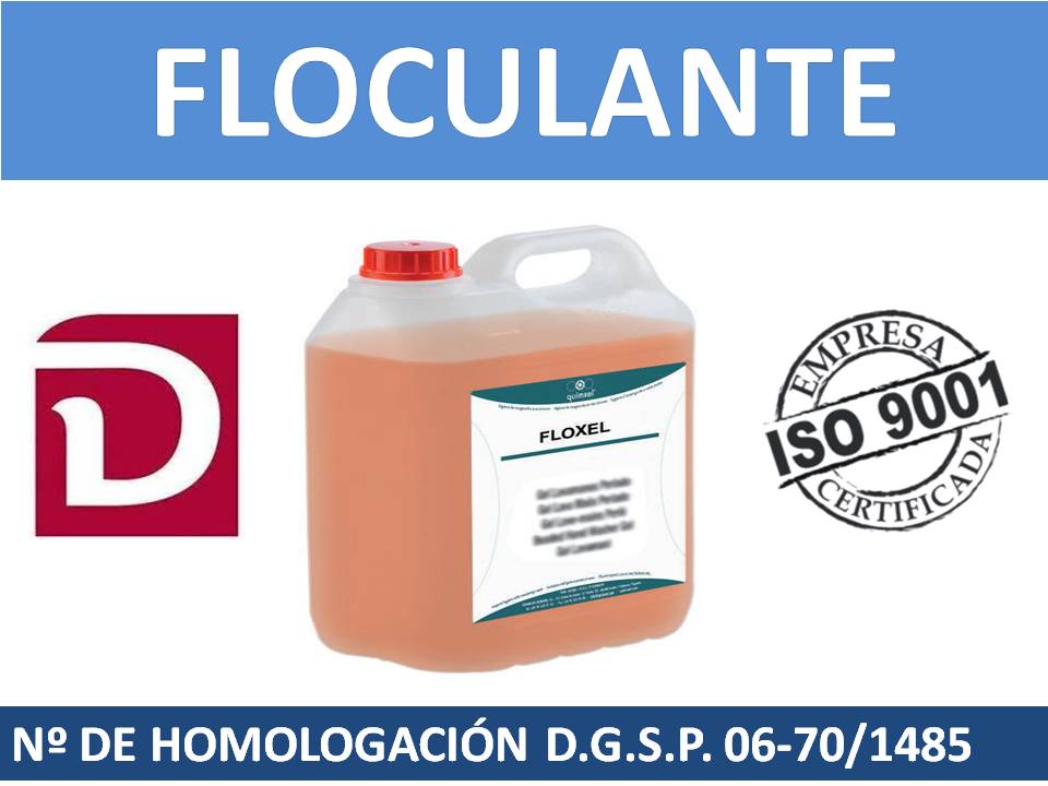 Floxel creado para la eliminación de partículas suspendidas en aguas de piscinas, balsas y riegos, etc.. rápido y eficaz forma de flóculos de mayor densidad que son arrastrados al fondo, homologado por D.G.S.P. 01-70-1485, envase de 10 lts