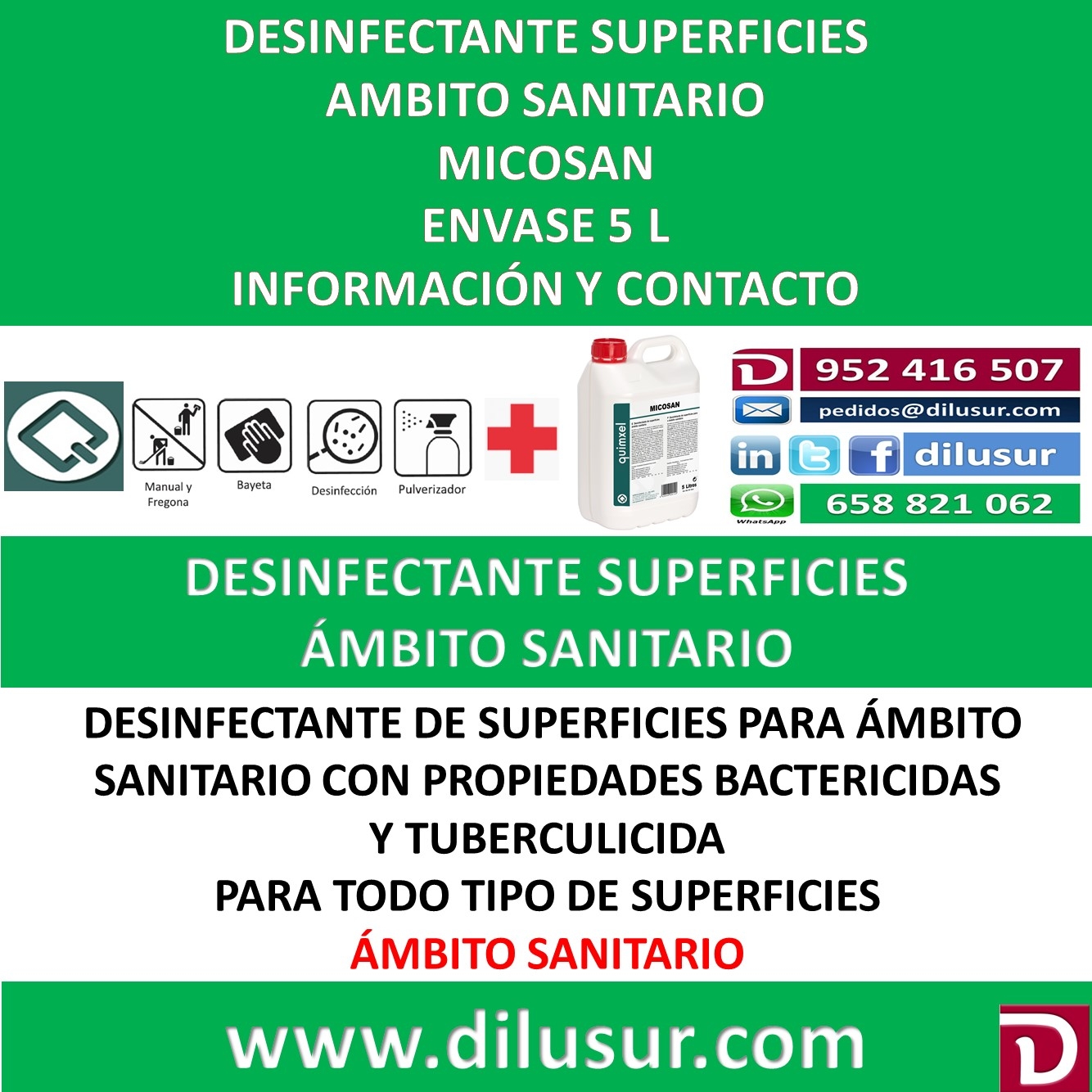 Desinfectante de superficies para el ámbito sanitario, para la aplicación en cualquier tipo de superficies lavables. Produto que cumple con las normas