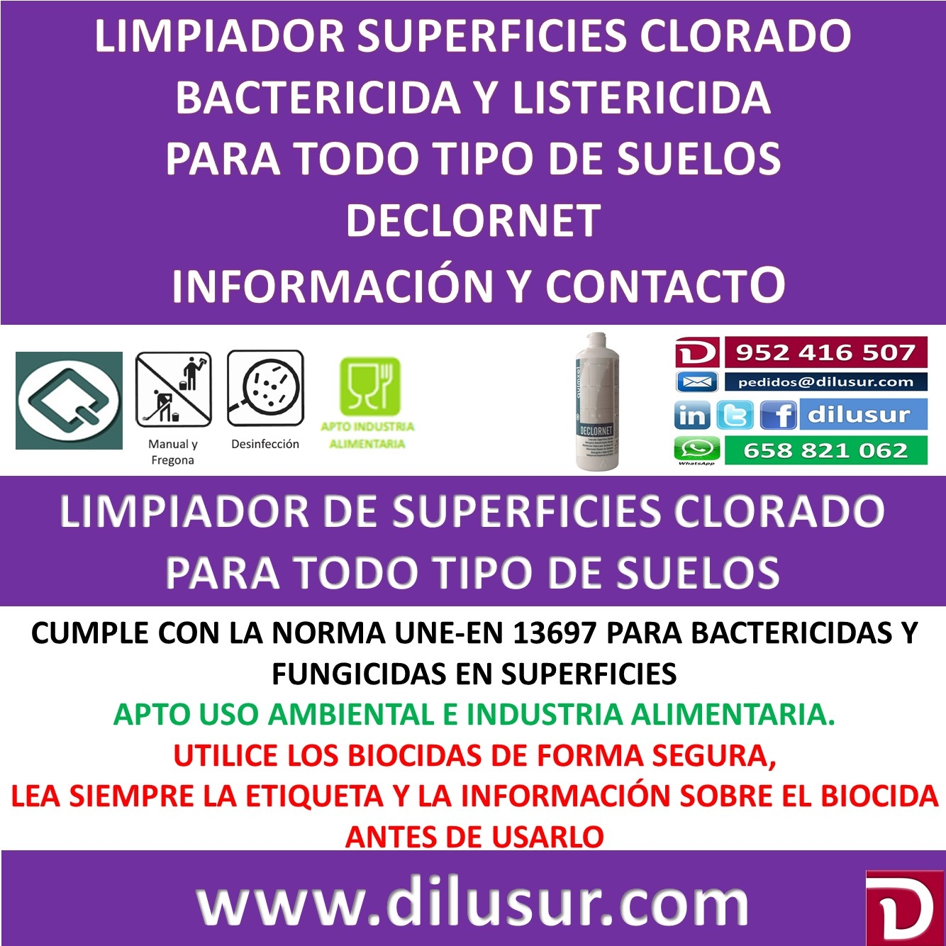 Limpiador superficies clorado, desinfectante para geriátricos, restaurantes,cafeterías y superficies para una profunda limpieza y desinfección. Producto bactericida y con actividad Listérica. Apto uso alimentario. Envase 1 L, Iva incluido