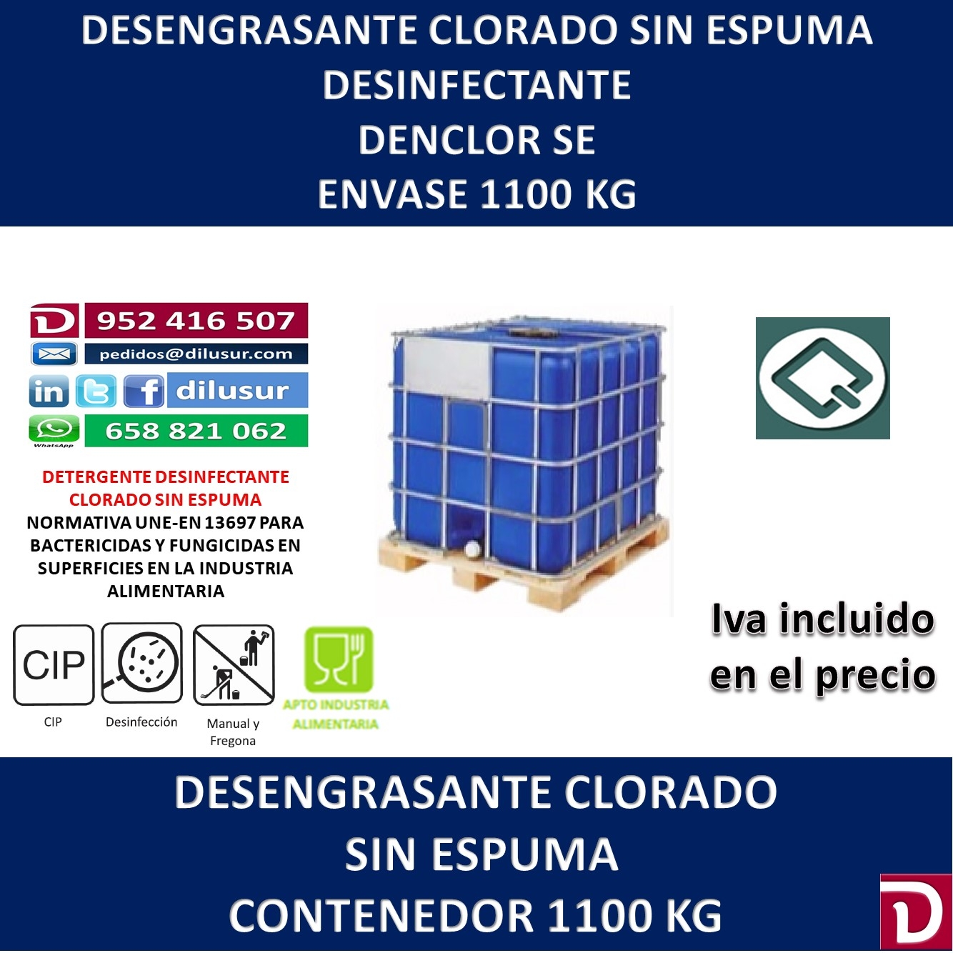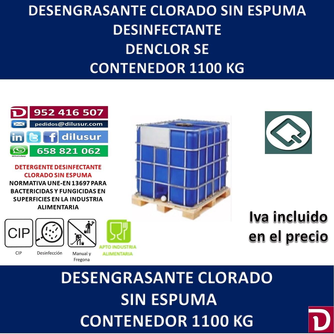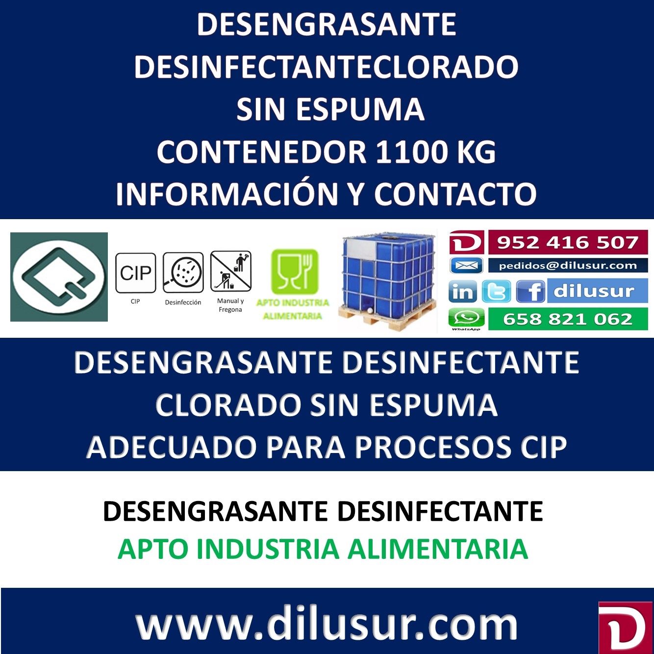 Desengrasante clorado sin espuma para limpieza y desinfección de superficies, equipos en la industria alimentaria cumple la NORMA UNE-EN 13697 para bactericidas y fungicidas en superficies. Envase 1100 KG. Iva incluido