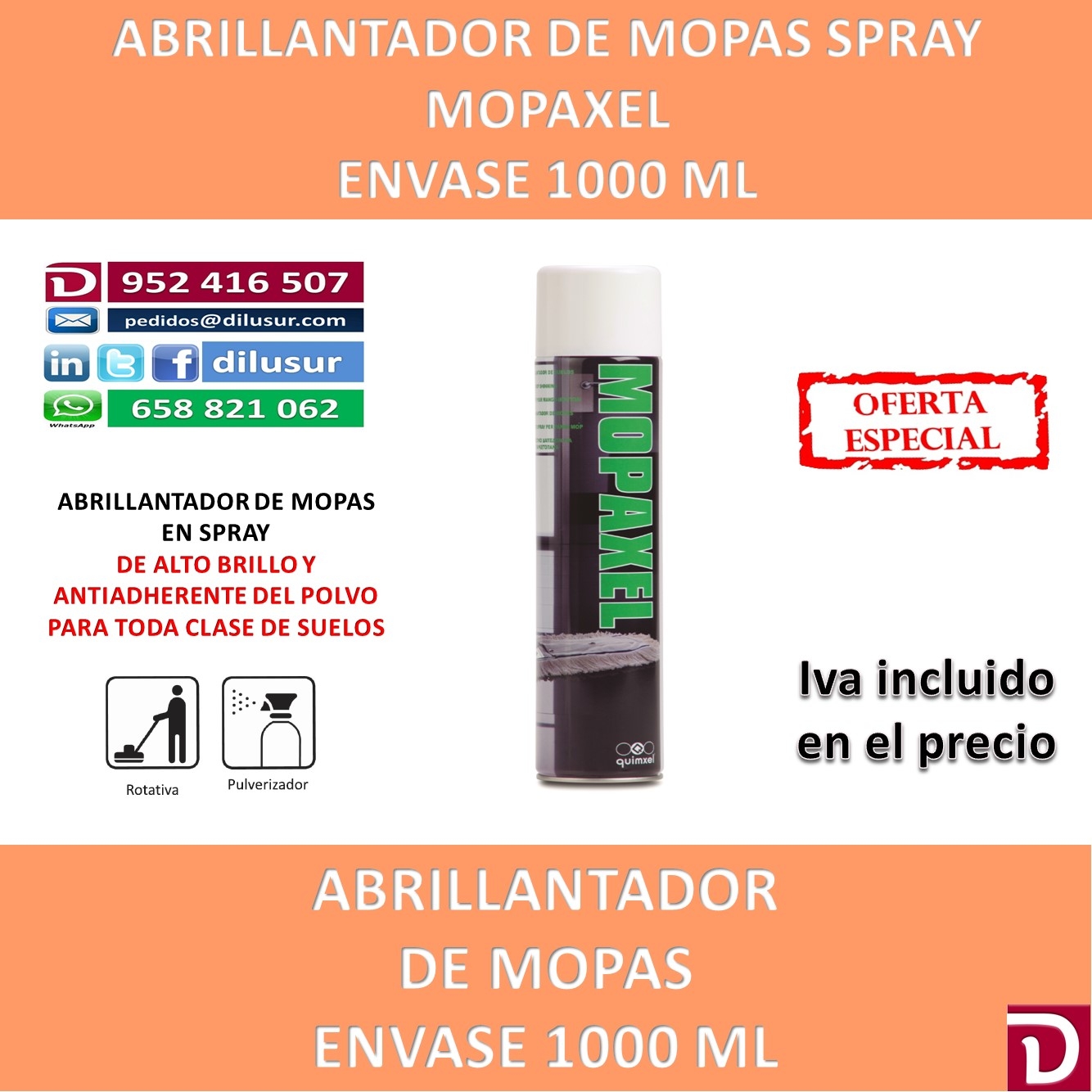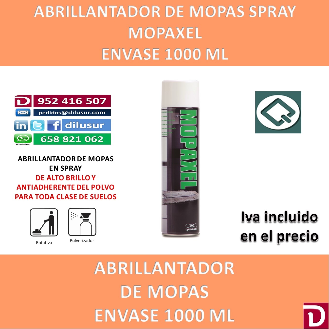 Abrillantador de mopas en Spray, limpiador en seco más rápido, conserva el brillo de las superficies donde se aplica y las protege de la adherencia del polvo. Para toda clase de suelos. De agradable perfume. Envase 1000 ML en Spray. Iva incluido