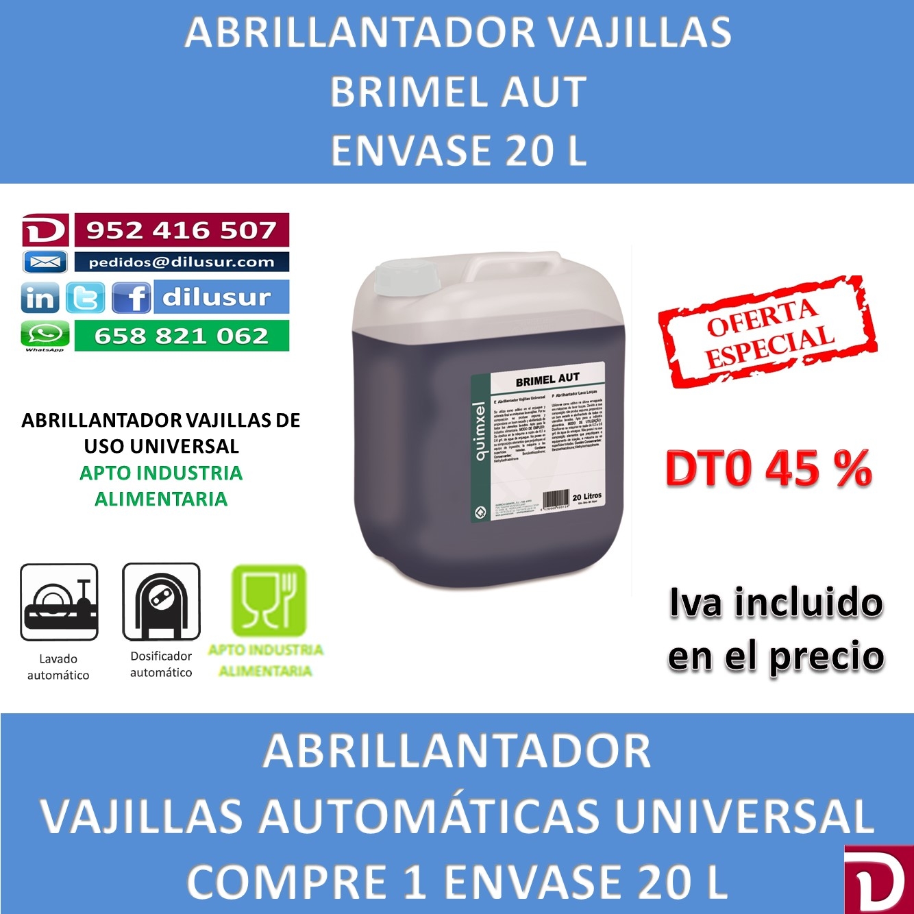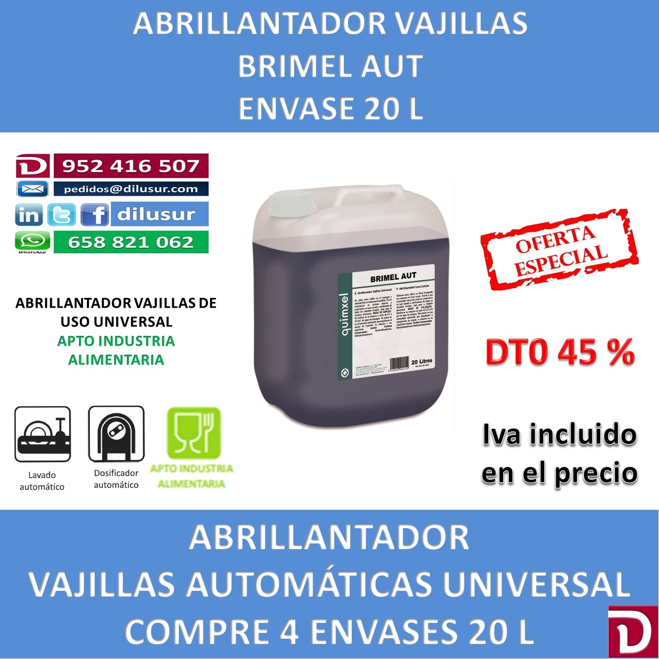 Abrillantador de vajillas de uso universal para el enjuague y aclarado final en máquinas lavavajillas. No produce espuma, proporciona un buen secado y abrillantado de todos los utensilios lavados. Envase 20 L. Iva incluido