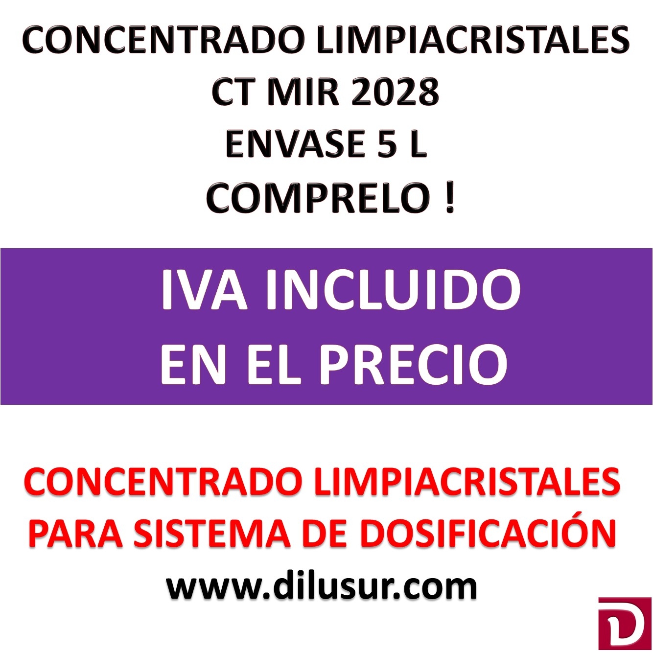 Es un producto indicado para utilizar mediante sistemas de disolución de concentrados. El producto resultante es indicado para la limpieza de superficies no porosas, ( cristales, barras de acero, mamparas, etc).