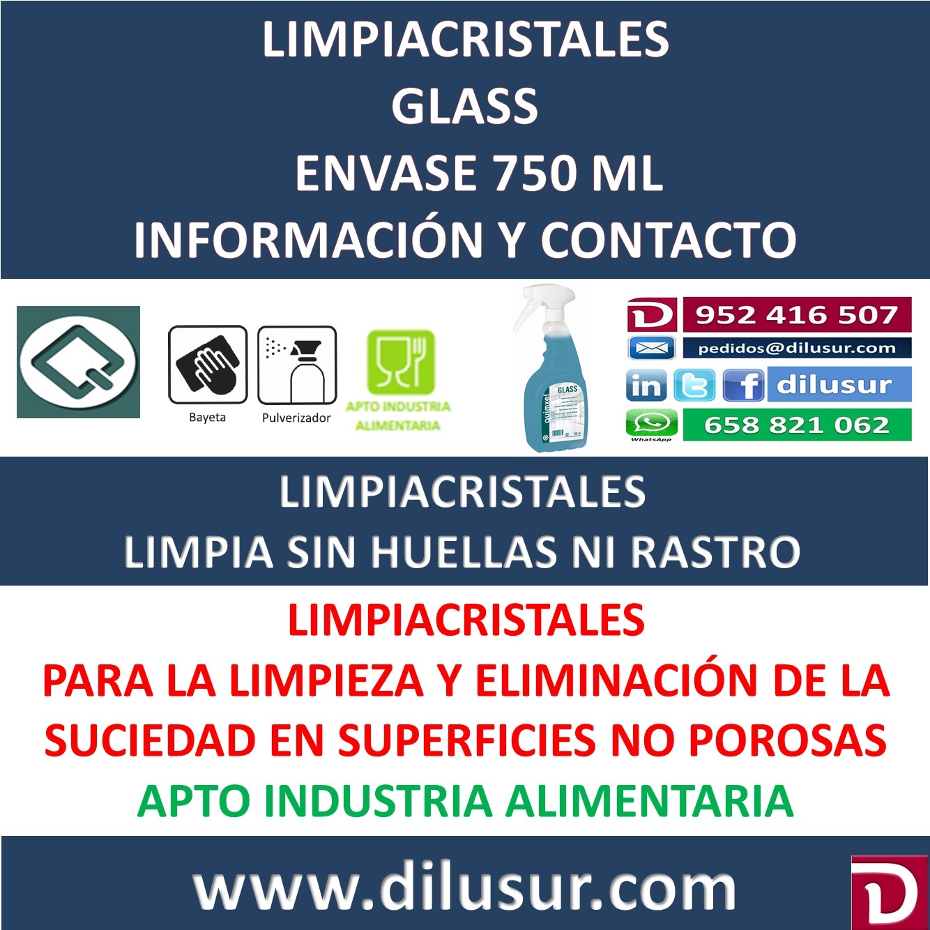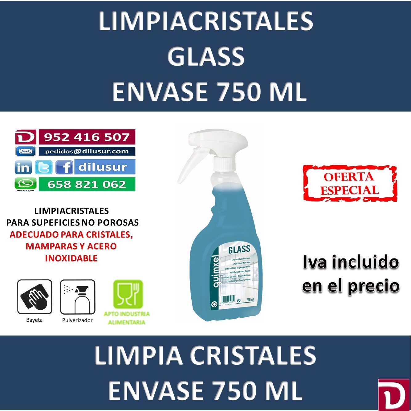 Limpiacristales para la limpieza y eliminación de suciedad en superficies no porosas. ( cristales, mamparas de acero, etc). De efecto anti vaho, no deja rastros ni velos. Apto industria alimentaria. Envase 750 ML. IVA incluido.