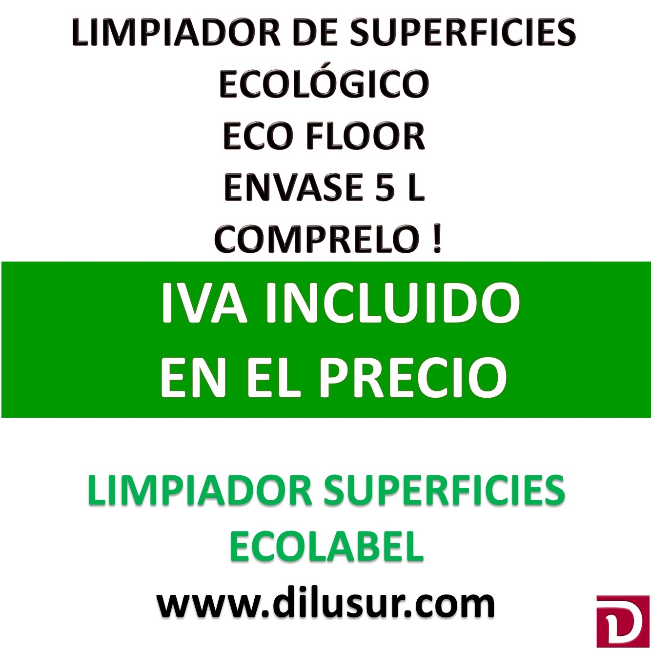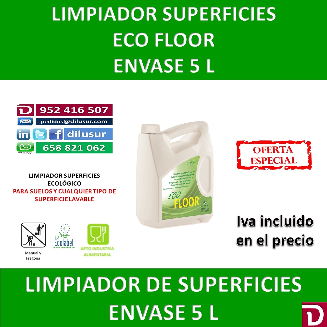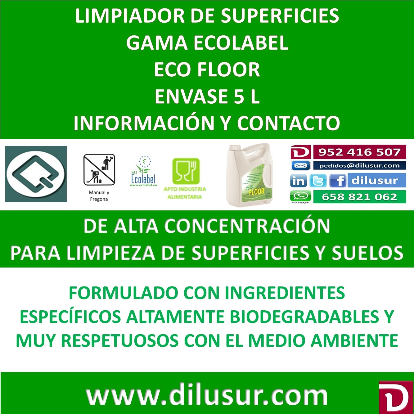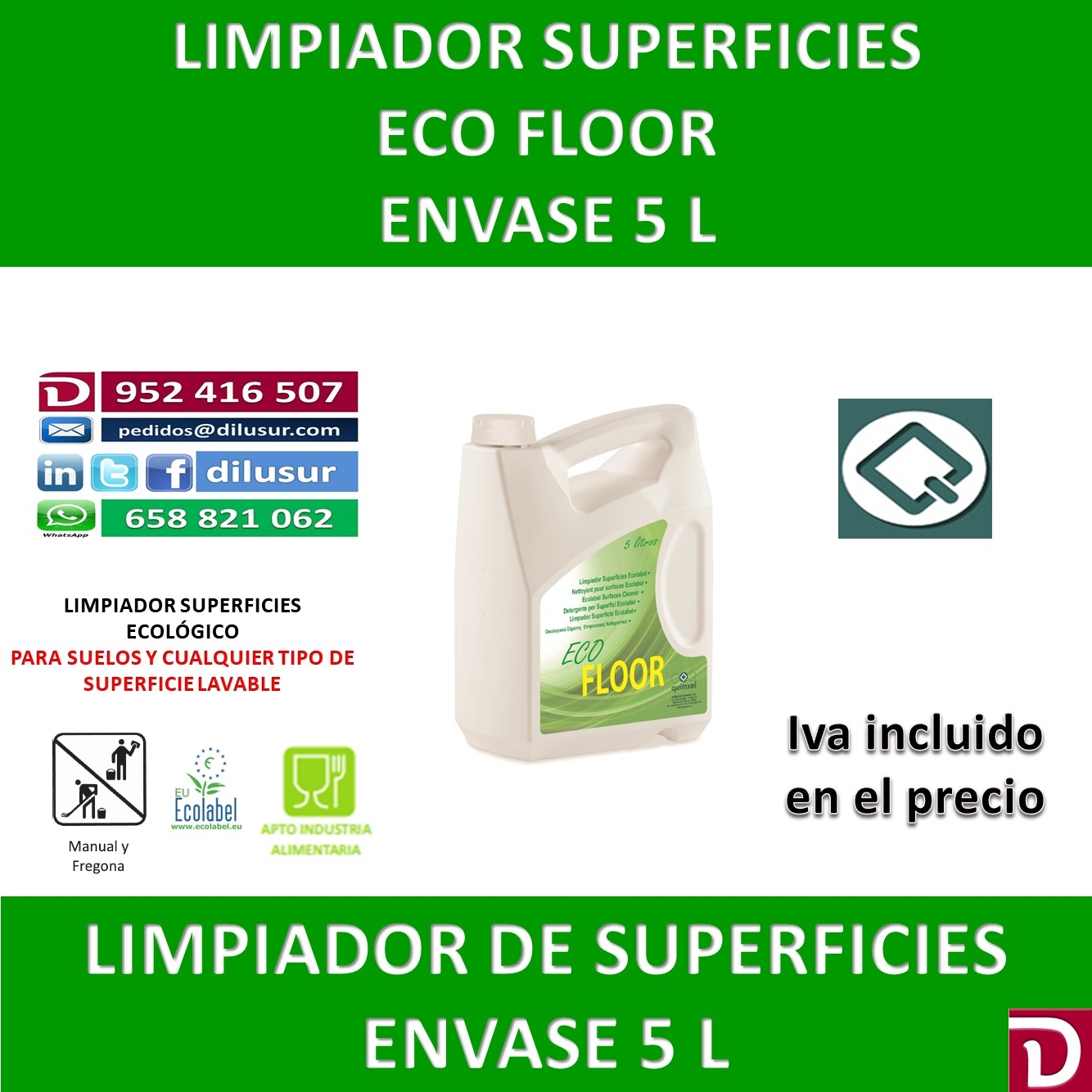 Limpiador de superficies ecolabel, de alta concentración adecuado para la limpieza de suelos y cualquier tipo de superficies. Formulado con ingredientes biodegradables. Apto industria alimentaria. Envase 5 L, Iva incluido