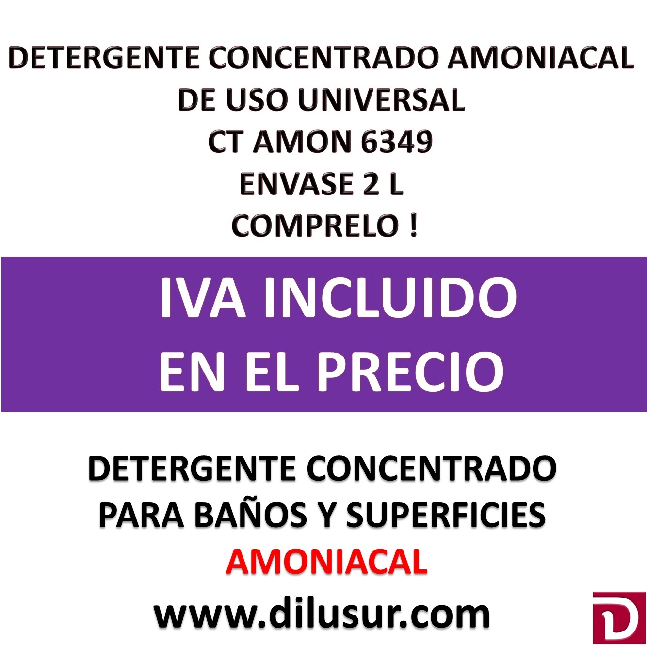 Concentrado amoniacal para su utilizr en sistemas de disolución de concentrados. El producto resultante tiene amplias aplicaciones en la limpieza y desinfección de suelos, azulejos, etc. Alto poder desengrasante y de muy agradable pefume. Apto para la industria alimentaria.