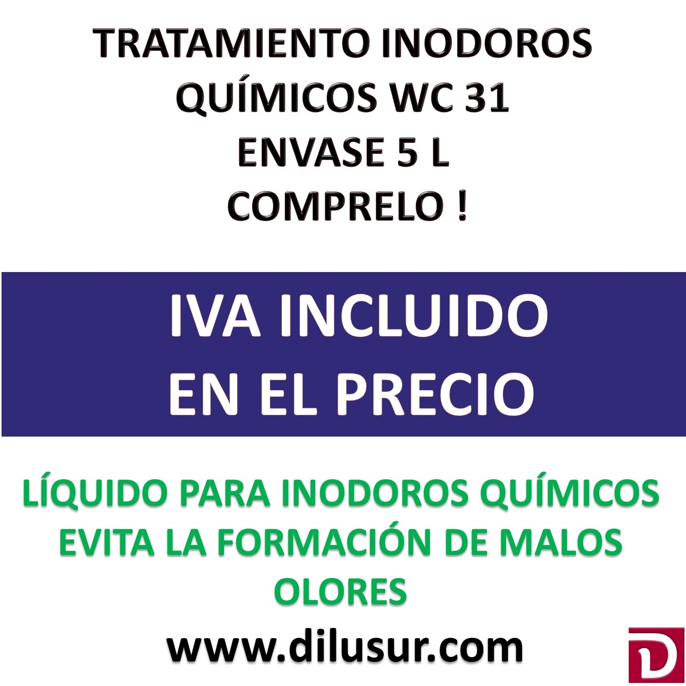 Para WC químicos Verter 60 cc de producto por cada 10 litros, de capacidad del depósito y añadir 2 litros de agua.