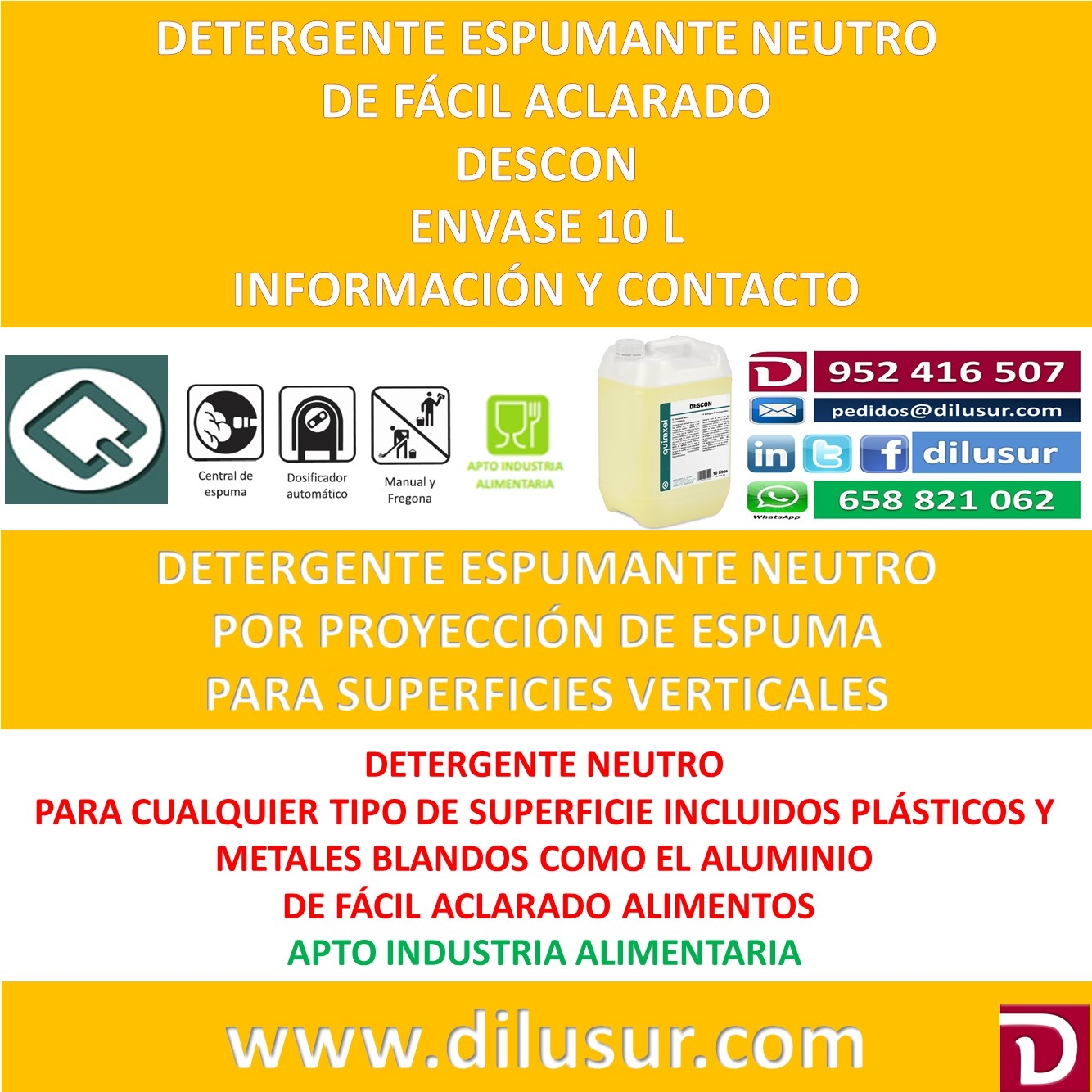Detergente neutro autoespumante, de facil aclarado para uso normal y por inmersión en equipos y utensilios. Para cualquier tipo de superficie incluidos plásticos, metales blandos, Apto industria alimentaria, Envase 10 L. Iva incluido