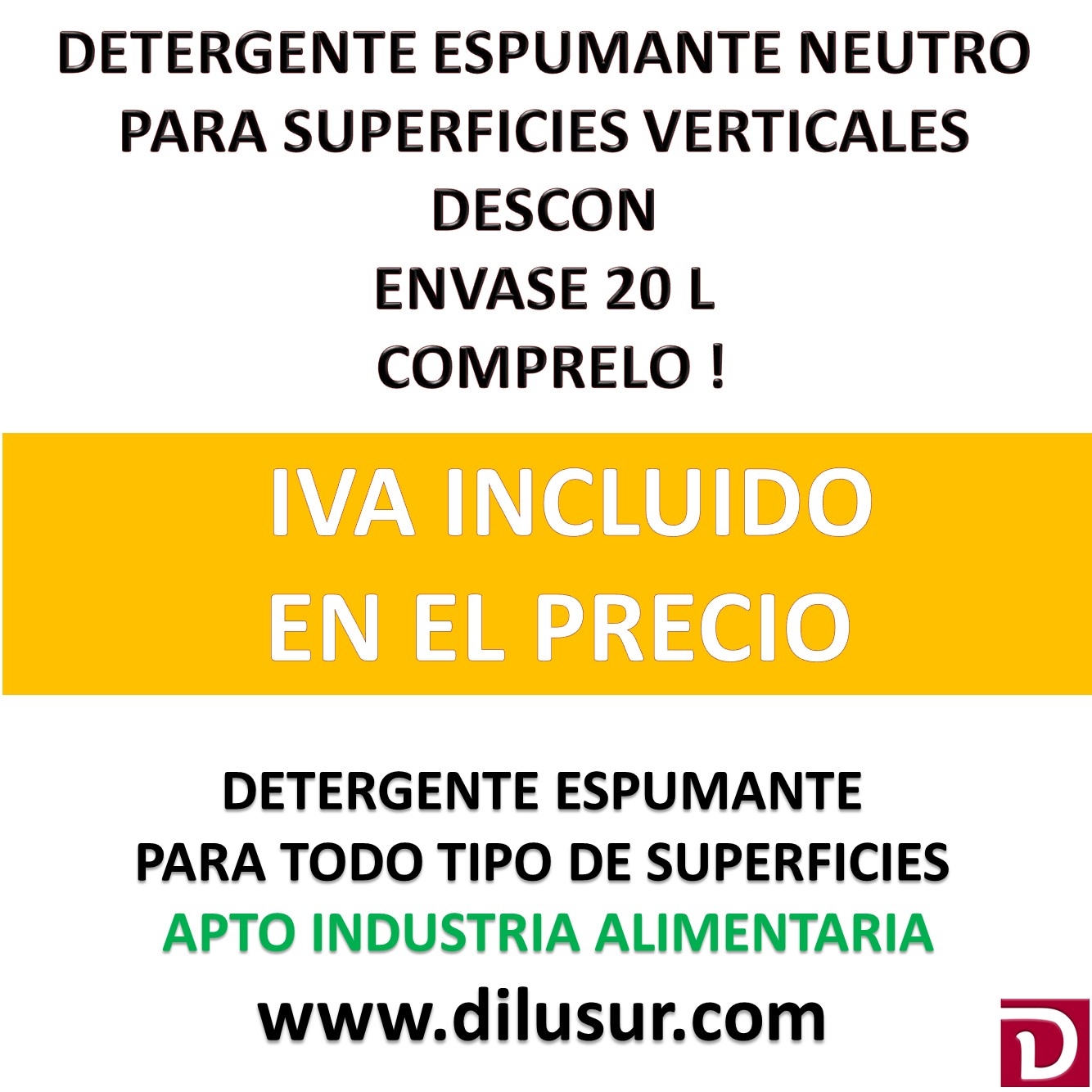 Detergente neutro autoespumante, de facil aclarado para uso normal y por inmersión en equipos y utensilios. Para cualquier tipo de superficie incluidos plásticos, metales blandos, Apto industria alimentaria, Envase 20 L. Iva incluido