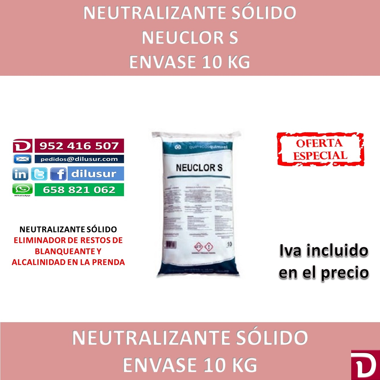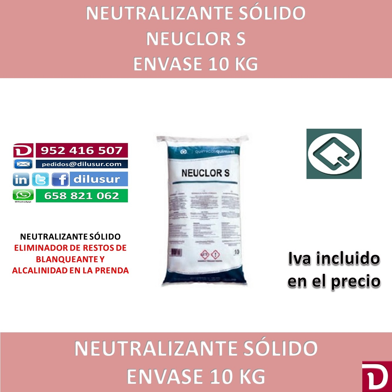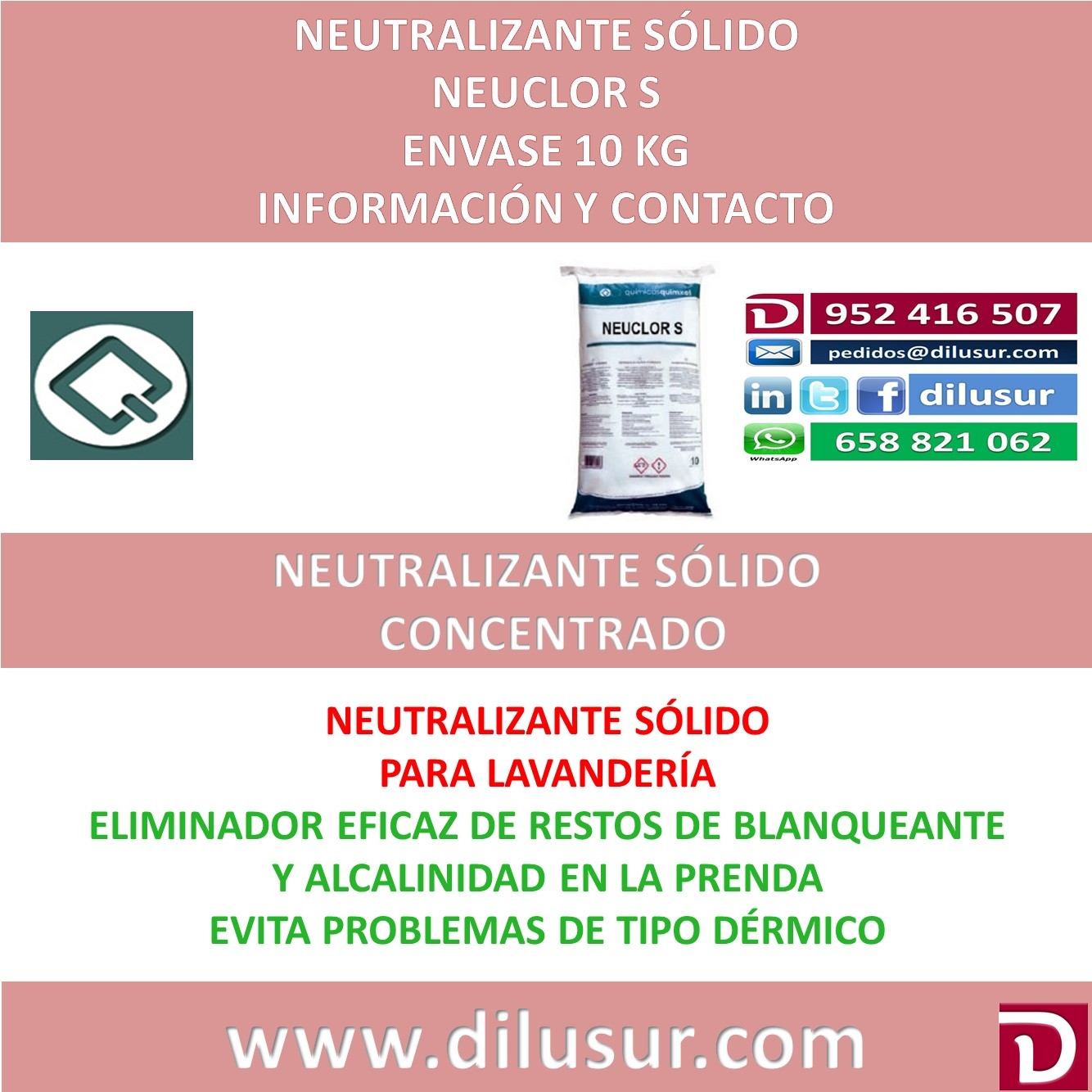 Neutralizante sólido para utilizar en la fase de aclarado, nos asegura la eliminacion de los restos de cloro así como la neutralizacion de alcalinidad en la prensa. Evita la degradación química en las fibras textiles. Envase 10 kg. Iva incluido