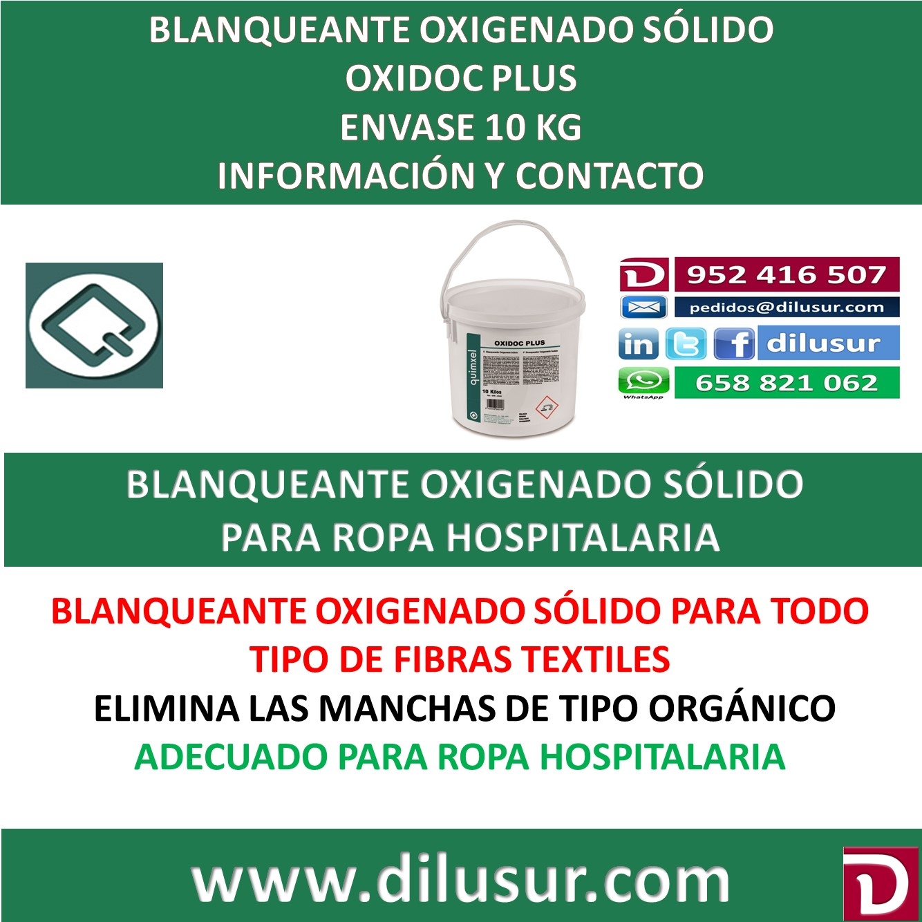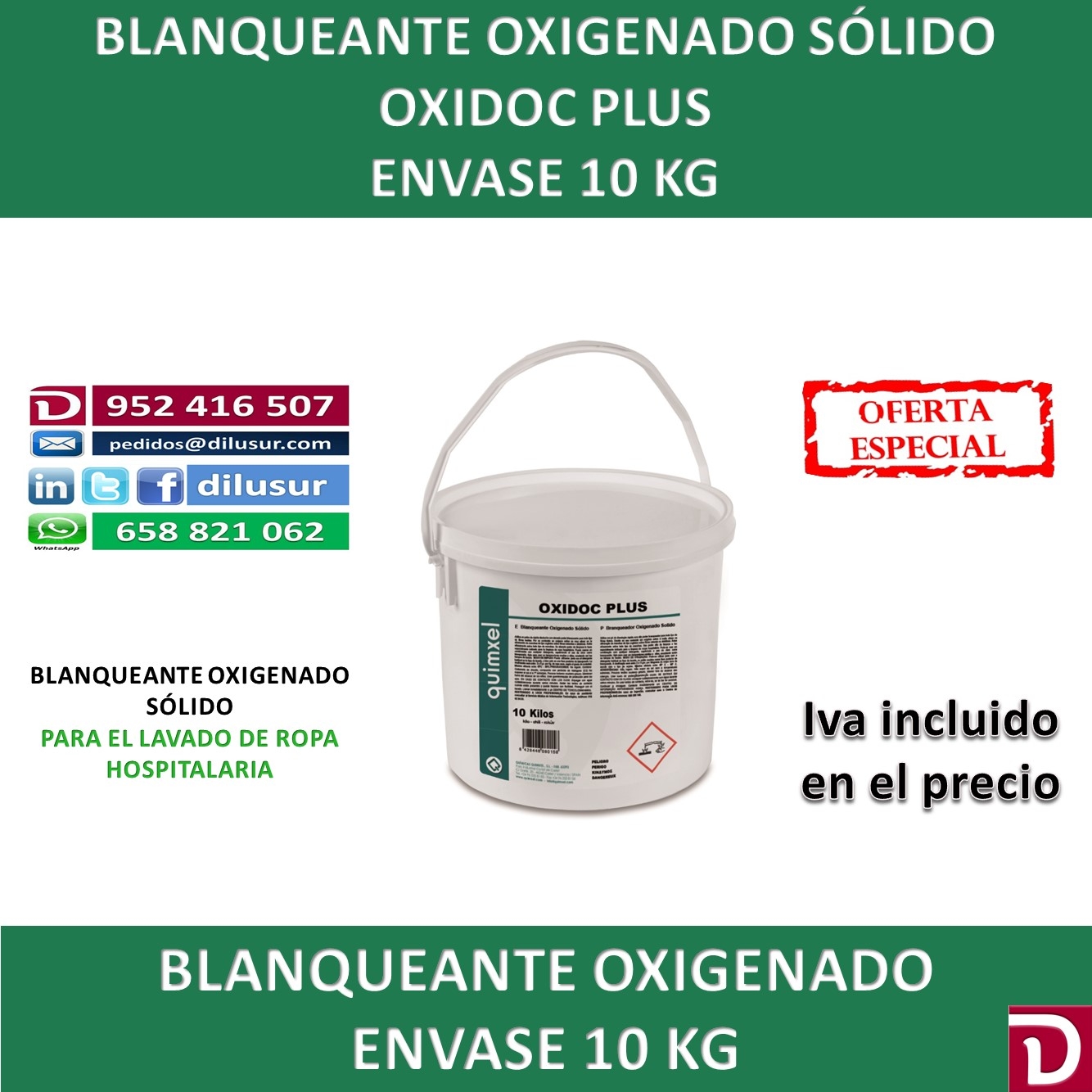 Blanqueante oxigenado sólido para todo tipo de fibras textiles, Eficaz eliminador de manchas de tipo orgánico sobre todo tipo de fibras naturales o sintéticas. Envase 10 Kg. Iva incluido.