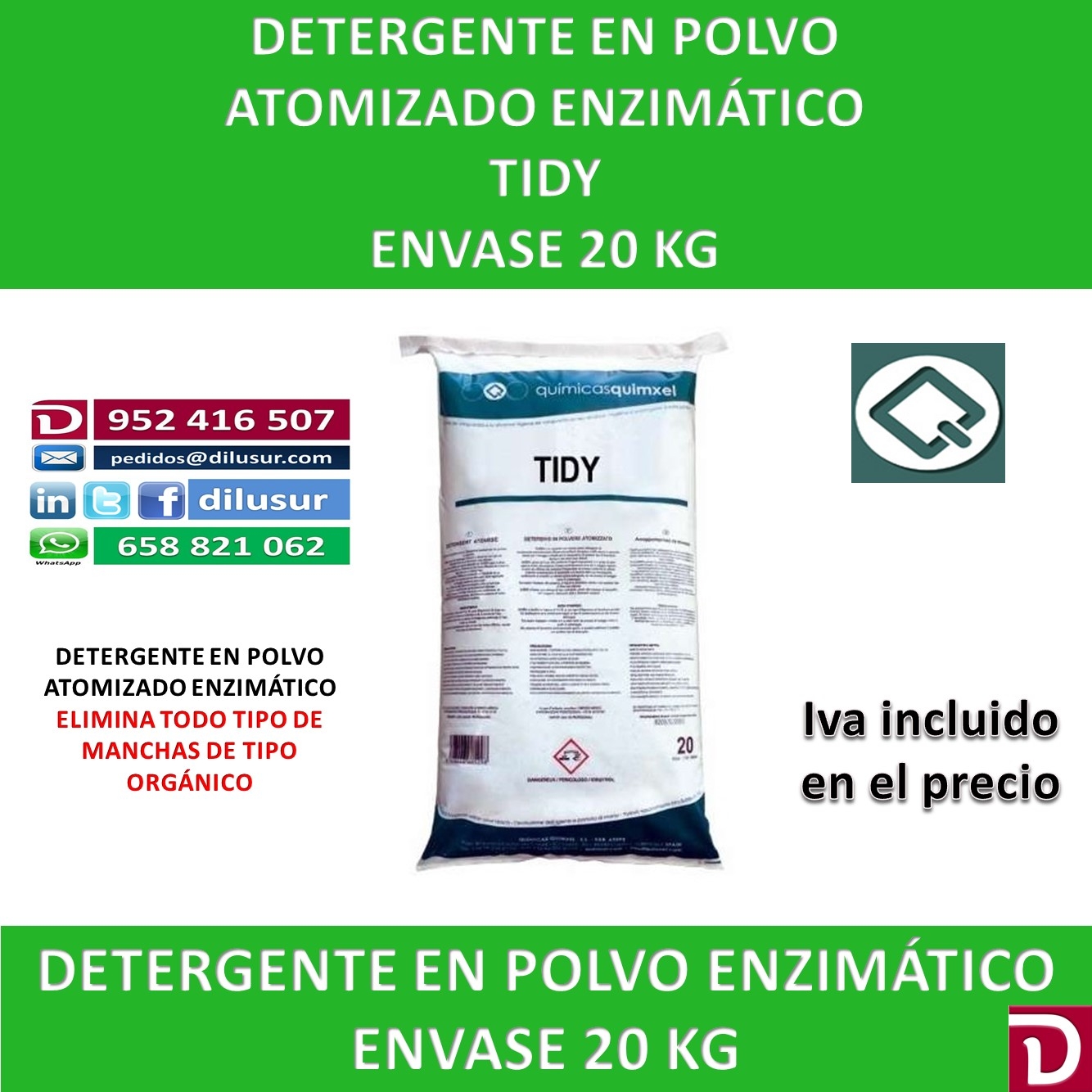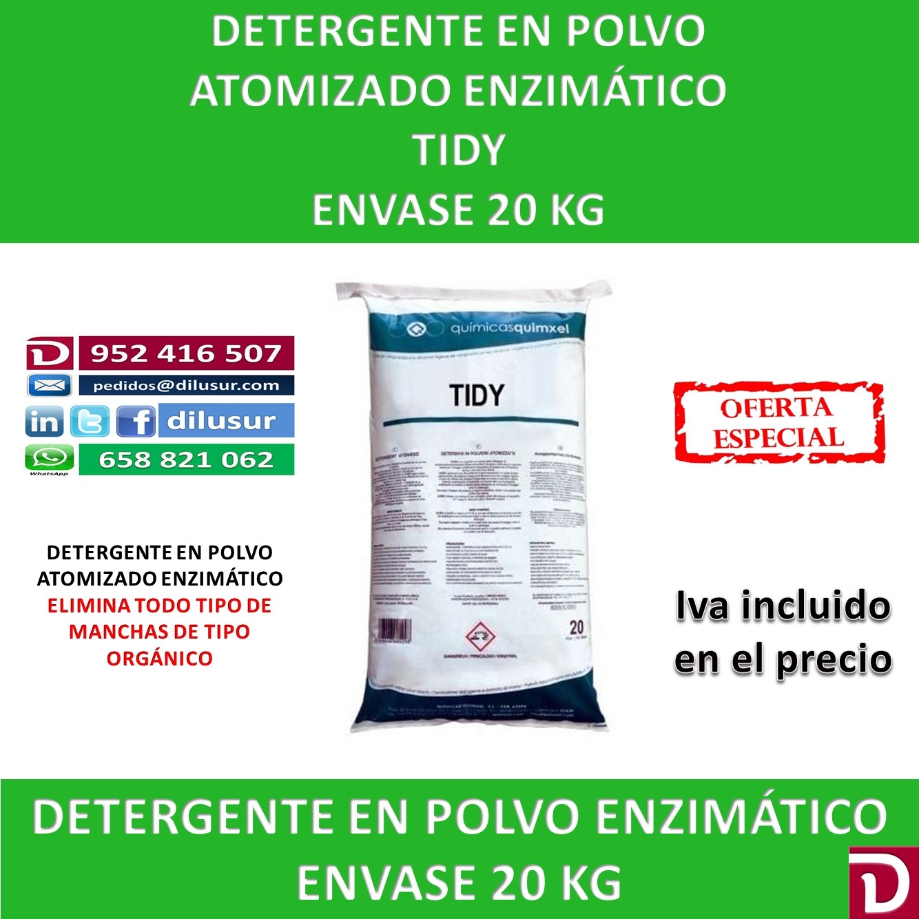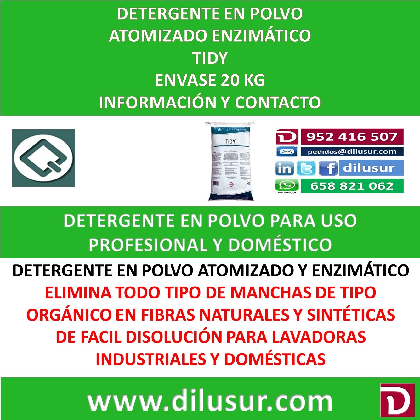 Detergente atomizado enzimático para fibras naturales y sintéticas en lavadoras industriales y domésticas. Elimina todo tipo de manchas orgánicas. Contiene blanqueantes ópticos y oxigenados, realza la blancura. Envase 20 L. Iva incluido